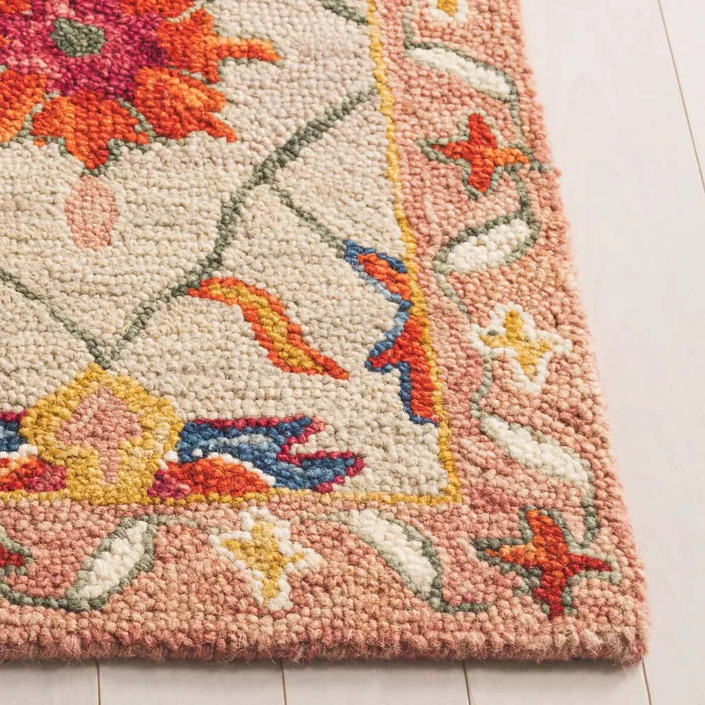 Introducing our exquisite Ivory and Rust area rug, a perfect blend of traditional charm and high-quality construction. Designed to add a touch of elegance to any space, this small rectangle rug measures a versatile 4 feet by 6 feet with a comfortable height of 1/2 inch. Handcrafted in India with a meticulous hand tufted technique, this rug boasts an exceptional blend of 85% wool and 15% cotton, ensuring both durability and a soft texture underfoot. The woollen fibers provide warmth and richness, while the cotton gives the rug a plush, inviting feel. This piece features a traditional style that exudes timeless sophistication. The rug's intricate pattern showcases a harmonious combination of ivory and rust hues, graced with a symphony of floral and geometric motifs that evoke the grandeur of classic designs. Inherently versatile, this rug will complement a vast array of interior themes, making it an ideal choice for those who appreciate the beauty of antique-inspired decor. Whether placed in your living room, dining area, or bedroom, it's sure to enhance the space with its alluring palette and intricate detailing, bringing a refined and homely ambiance to your abode. Elevate your home's decor with this luxurious, traditionally styled showpiece, and indulge in the rich heritage and superior craftsmanship that only a hand tufted rug from India can offer.