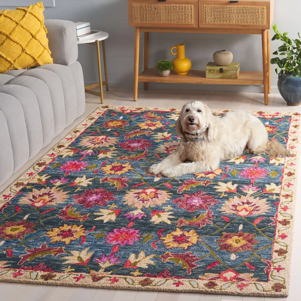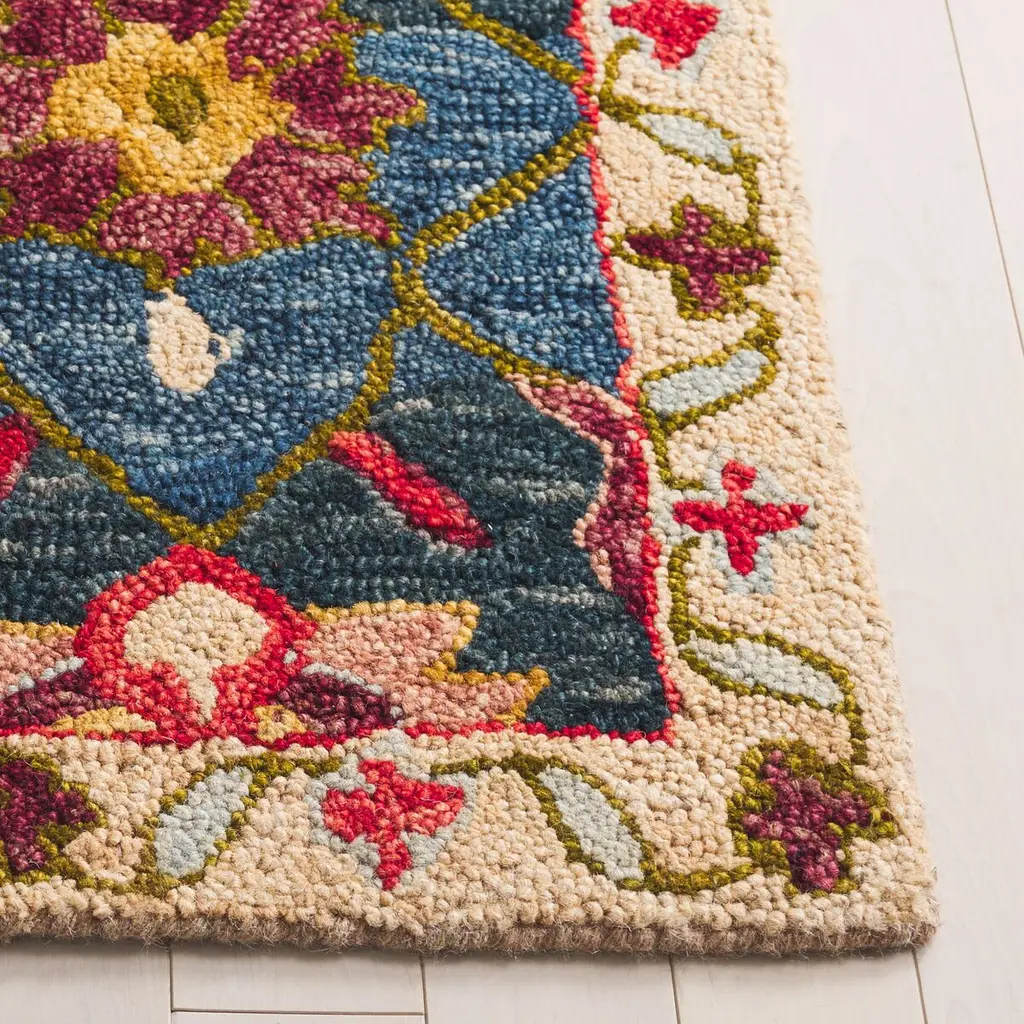 Introducing our exquisite Ivory and Rust area rug, a perfect blend of traditional charm and high-quality construction. Designed to add a touch of elegance to any space, this small rectangle rug measures a versatile 4 feet by 6 feet with a comfortable height of 1/2 inch. Handcrafted in India with a meticulous hand tufted technique, this rug boasts an exceptional blend of 85% wool and 15% cotton, ensuring both durability and a soft texture underfoot. The woollen fibers provide warmth and richness, while the cotton gives the rug a plush, inviting feel. This piece features a traditional style that exudes timeless sophistication. The rug's intricate pattern showcases a harmonious combination of ivory and rust hues, graced with a symphony of floral and geometric motifs that evoke the grandeur of classic designs. Inherently versatile, this rug will complement a vast array of interior themes, making it an ideal choice for those who appreciate the beauty of antique-inspired decor. Whether placed in your living room, dining area, or bedroom, it's sure to enhance the space with its alluring palette and intricate detailing, bringing a refined and homely ambiance to your abode. Elevate your home's decor with this luxurious, traditionally styled showpiece, and indulge in the rich heritage and superior craftsmanship that only a hand tufted rug from India can offer.
