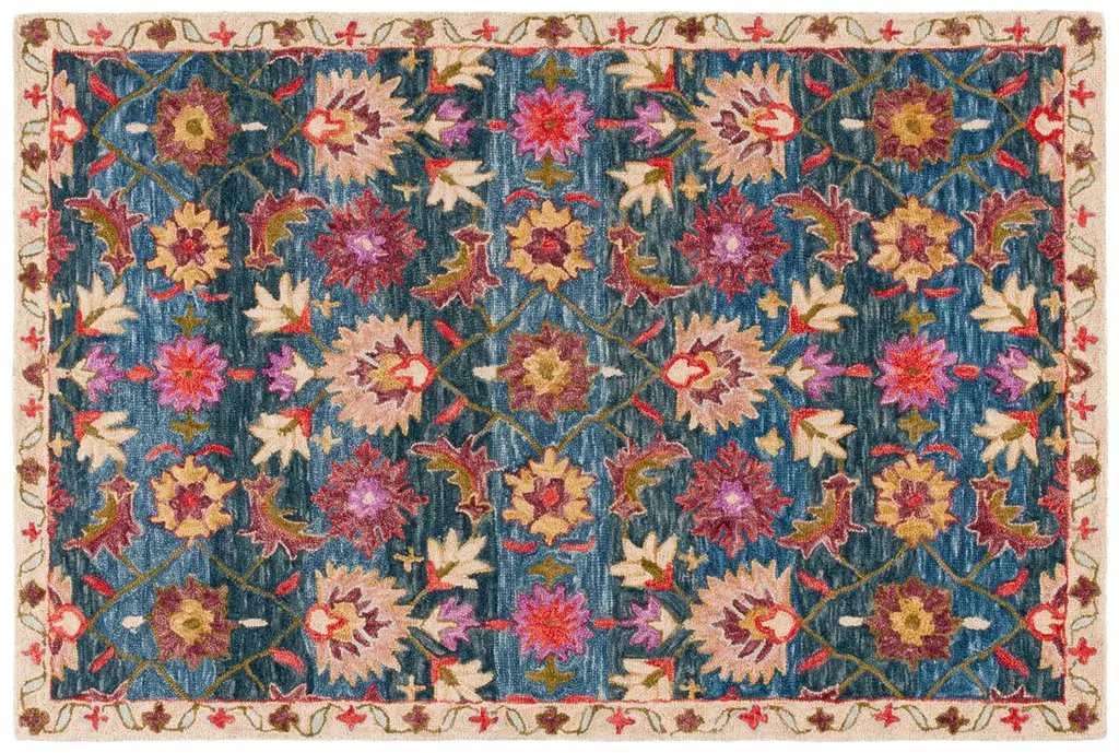 Introducing our exquisite Ivory and Rust area rug, a perfect blend of traditional charm and high-quality construction. Designed to add a touch of elegance to any space, this small rectangle rug measures a versatile 4 feet by 6 feet with a comfortable height of 1/2 inch. Handcrafted in India with a meticulous hand tufted technique, this rug boasts an exceptional blend of 85% wool and 15% cotton, ensuring both durability and a soft texture underfoot. The woollen fibers provide warmth and richness, while the cotton gives the rug a plush, inviting feel. This piece features a traditional style that exudes timeless sophistication. The rug's intricate pattern showcases a harmonious combination of ivory and rust hues, graced with a symphony of floral and geometric motifs that evoke the grandeur of classic designs. Inherently versatile, this rug will complement a vast array of interior themes, making it an ideal choice for those who appreciate the beauty of antique-inspired decor. Whether placed in your living room, dining area, or bedroom, it's sure to enhance the space with its alluring palette and intricate detailing, bringing a refined and homely ambiance to your abode. Elevate your home's decor with this luxurious, traditionally styled showpiece, and indulge in the rich heritage and superior craftsmanship that only a hand tufted rug from India can offer.