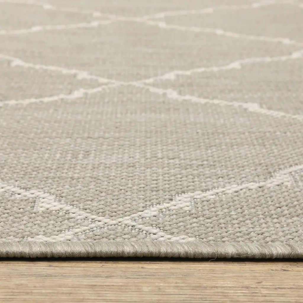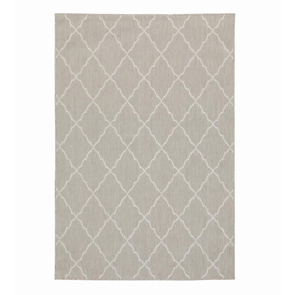 Our Hamilton Latticework Indoor/Outdoor Rug is full of texture and style, showcasing a distinctive wavy lattice pattern in a cool, neutral palette that will fit in with just about any design aesthetic. Machine woven of 100% polypropylene, this rug feels wonderful underfoot, and makes an eye-catching addition to patio, porch, deck, sunroom and more. All-weather, UV-protected polypropylene offers long-lasting quality and is easy care. Resistant to mold, stains and fading, this rug is ideal for heavy traffic and households with kids or pets. Pile is approx. ¼"H. Imported.
