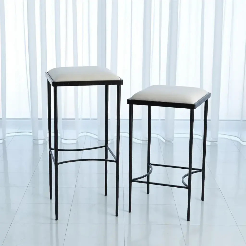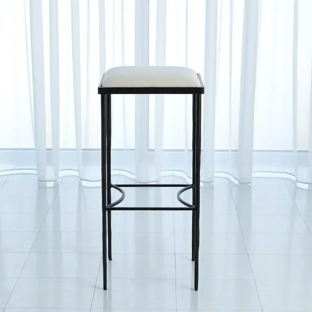 Minimalist yet textured, the hammered stool collection has an iron frame with hammered texture and a muslin cushion so that it can seamlessly blend in to any style decor. An instant classic. From a fashion forward perspective, Global Views offers accessories, furniture, statement lighting, and an assortment of rugs and mirrors to add beauty and joy to your home.