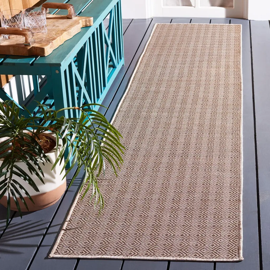 With its concentric diamond motif, this durable rug will bring tailored finesse to a porch, patio, entry, or or any other high-traffic space, indoors or out. It's especially easy to clean: You can even wash it down with a hose. Latex backing adds to the rug's longevity. The rug is Oeko-Tex Standard 100 certified, which means it's been tested for harmful substances.