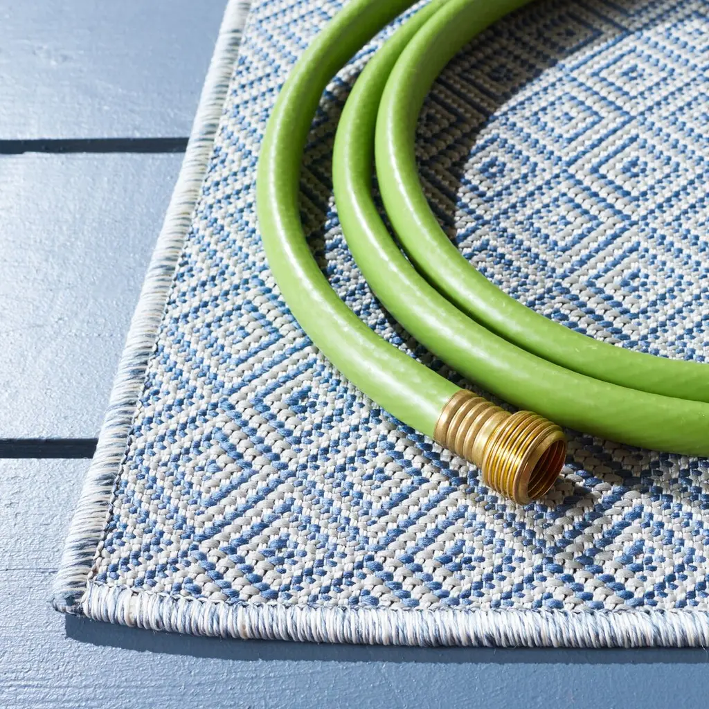 With its concentric diamond motif, this durable rug will bring tailored finesse to a porch, patio, entry, or or any other high-traffic space, indoors or out. It's especially easy to clean: You can even wash it down with a hose. Latex backing adds to the rug's longevity. The rug is Oeko-Tex Standard 100 certified, which means it's been tested for harmful substances.