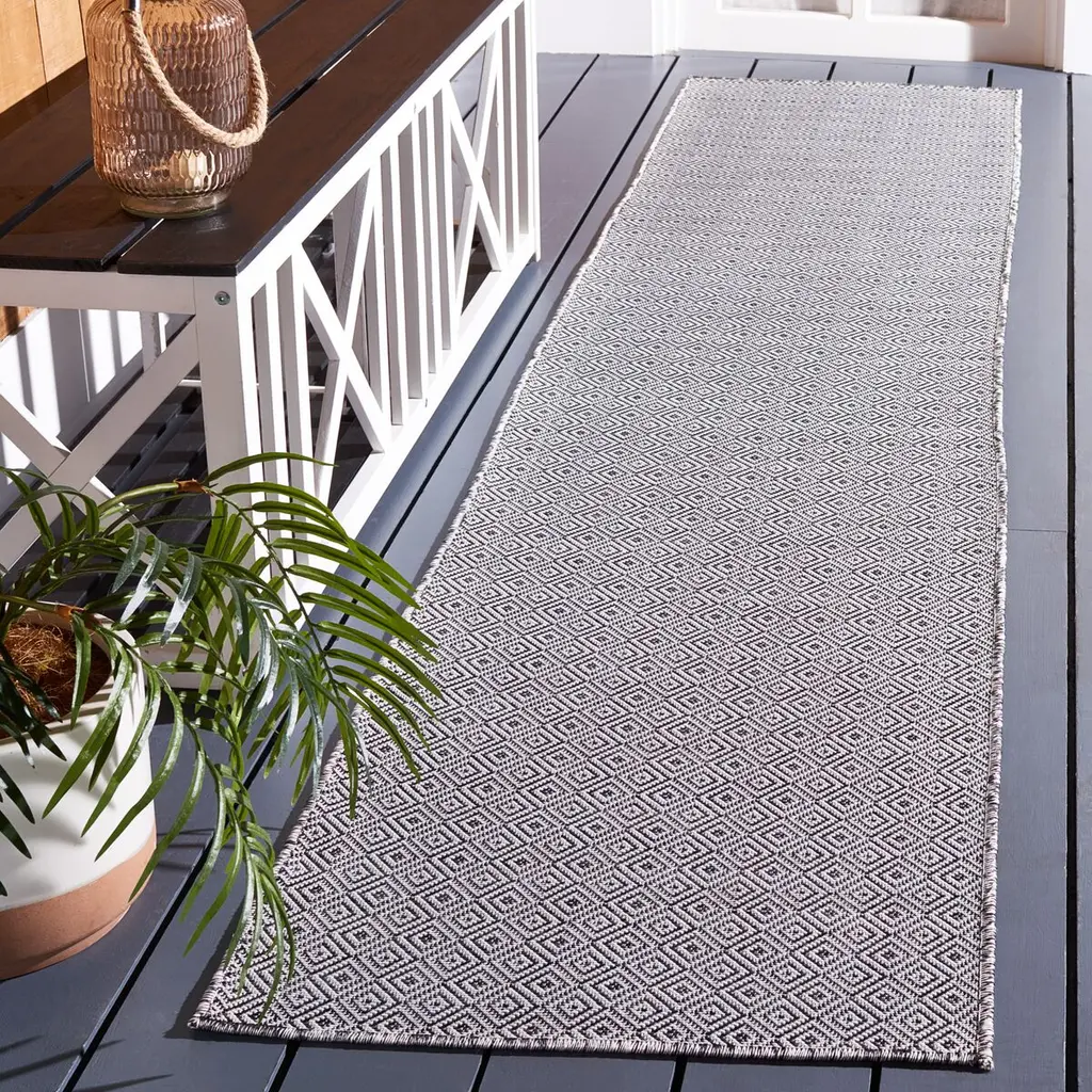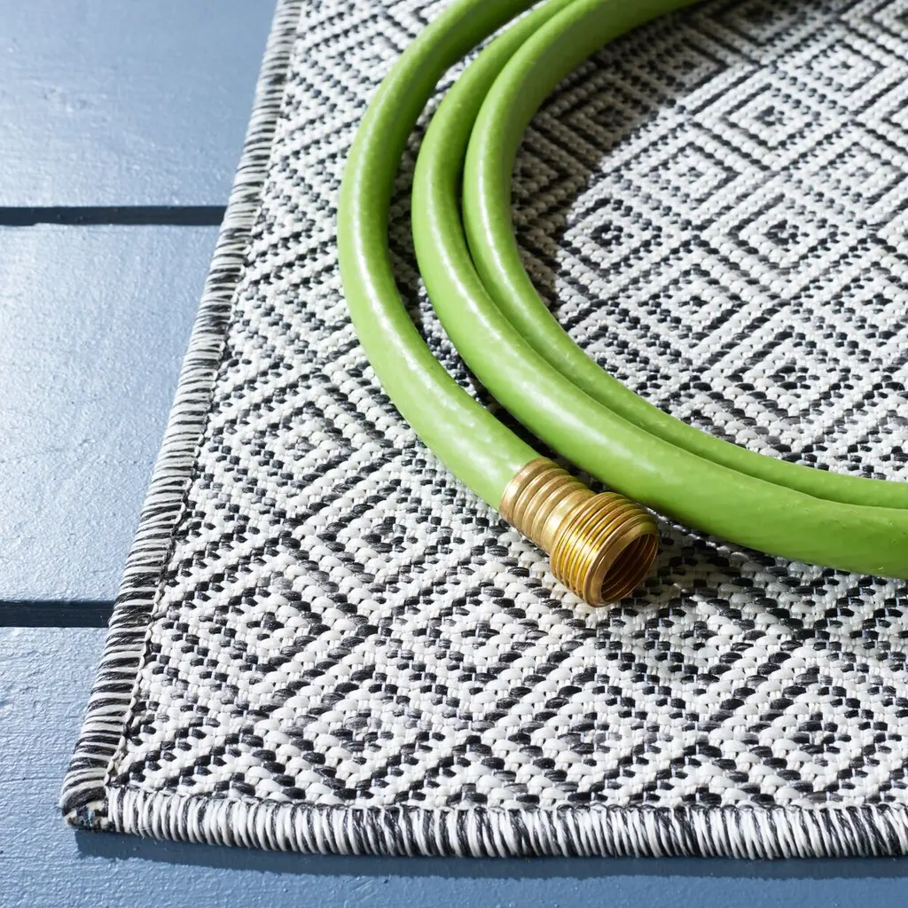 With its concentric diamond motif, this durable rug will bring tailored finesse to a porch, patio, entry, or or any other high-traffic space, indoors or out. It's especially easy to clean: You can even wash it down with a hose. Latex backing adds to the rug's longevity. The rug is Oeko-Tex Standard 100 certified, which means it's been tested for harmful substances.