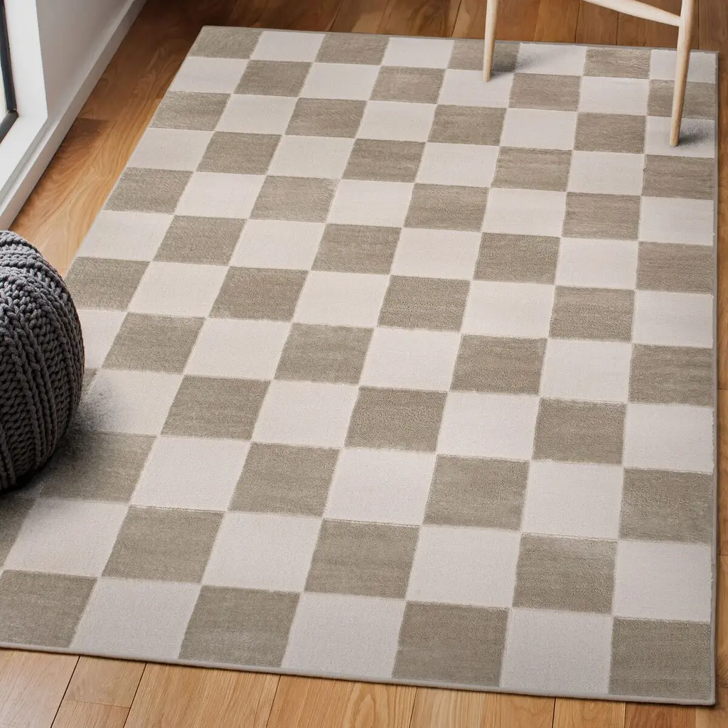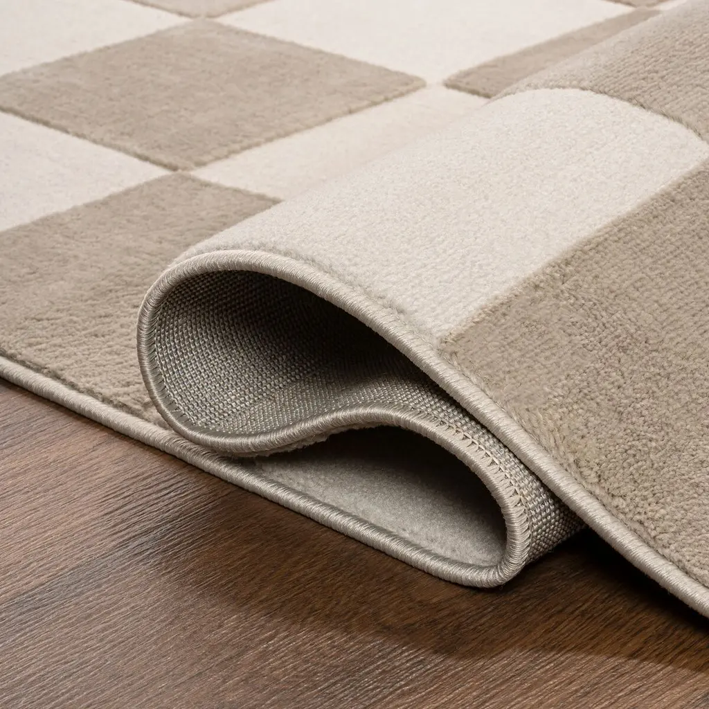 This casual rug features a geometric checkerboard pattern and a crisp two-tone color scheme. The family-friendly design is woven from plush polyester, with a high-low pile that accentuates the pattern. Make a bold statement in the bedroom, living room or dining room with this unique modern rug. Please note that variations in the rug's appearance may occur when the fibers are brushed due to natural light reflection and weaving characteristics.