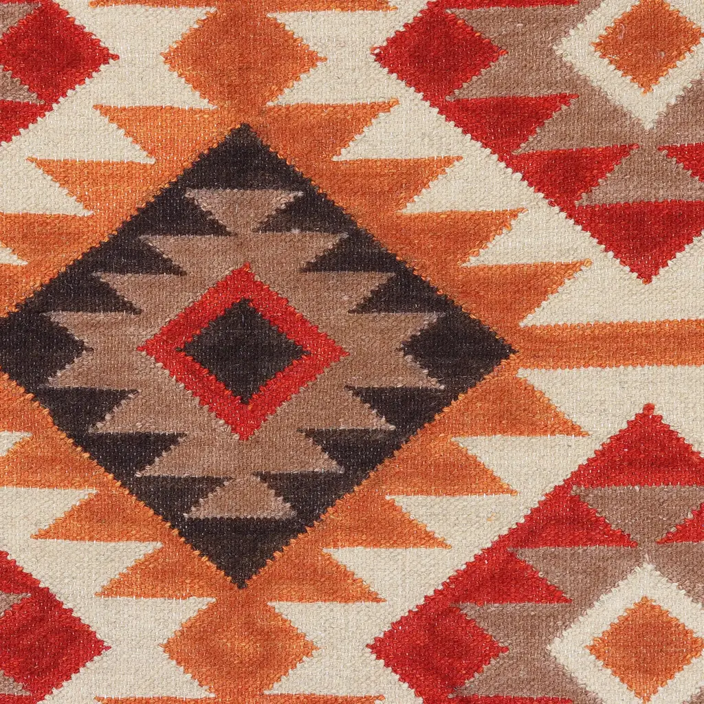 Dazzling geometric patterns make Ashfaq Ahmed's area rug a must-have for brightening your home decor. Woven by Indian artisans on a traditional handloom, the wool rug features a bright geometric pattern with a cotton warp, along with a row of playful fringe on either end. Available in two sizes, the rug makes a colorful addition to your home.