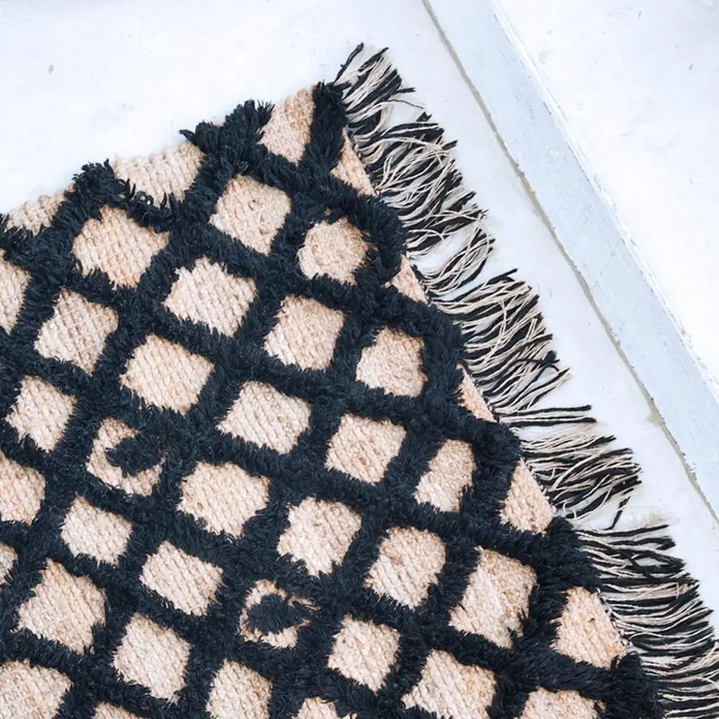 Hand Knotted Base Plaited Customizable Diamond Weave In Black Extra Large