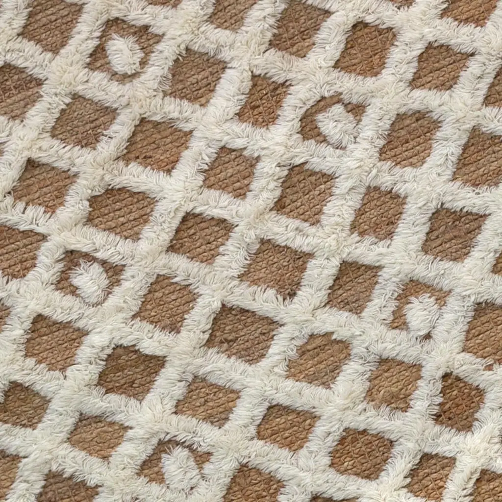 ThedDiamonds weave mixes the durability and natural beauty of hemp with the softness of the wool. The Diamonds Weave is formed on a base of plaited renewable raw hemp, with a Classic diamond and dot pattern skilfully hand knotted into place to create texture through this rich piece. The Diamonds Weave has an earthy elevated edge, created with an abundance of natural elements, perfect for resort and tranquil living.All ground control rugs are hand-loomed to order. Please allow 6 weeks for delivery. Composition : Hemp 70%, wool 30%.