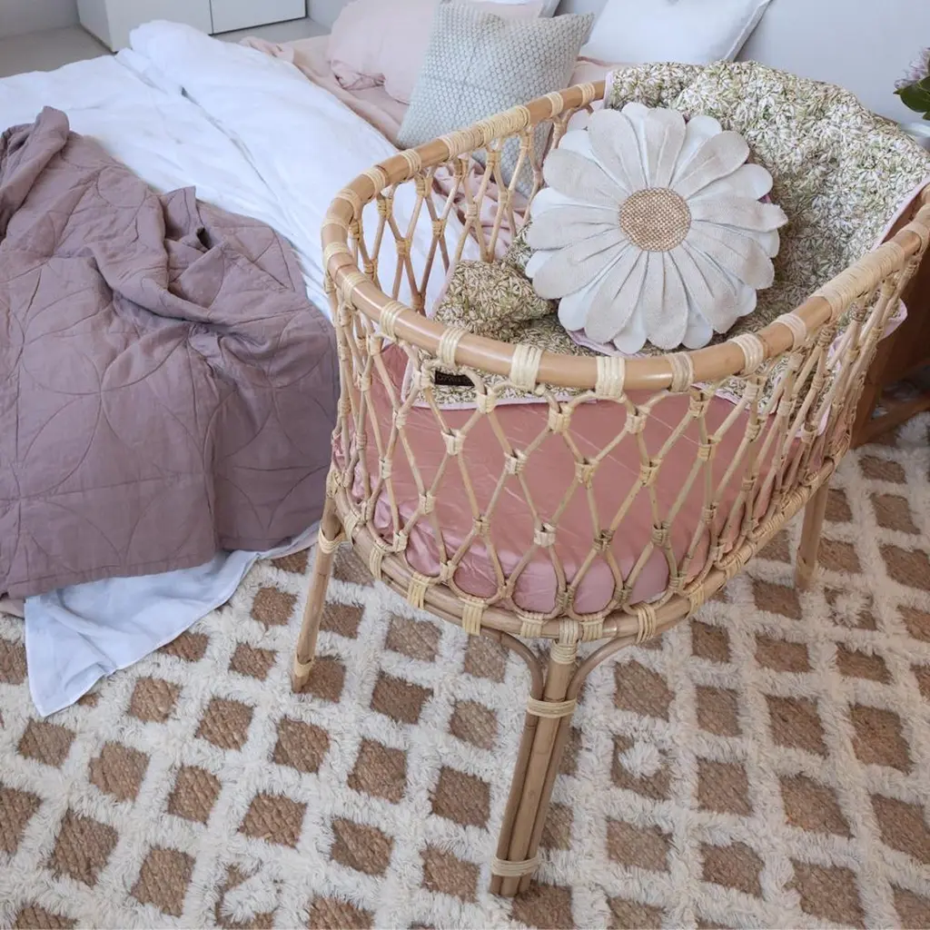 Hand Knotted Base Plaited Customizable Diamond Weave In White Small