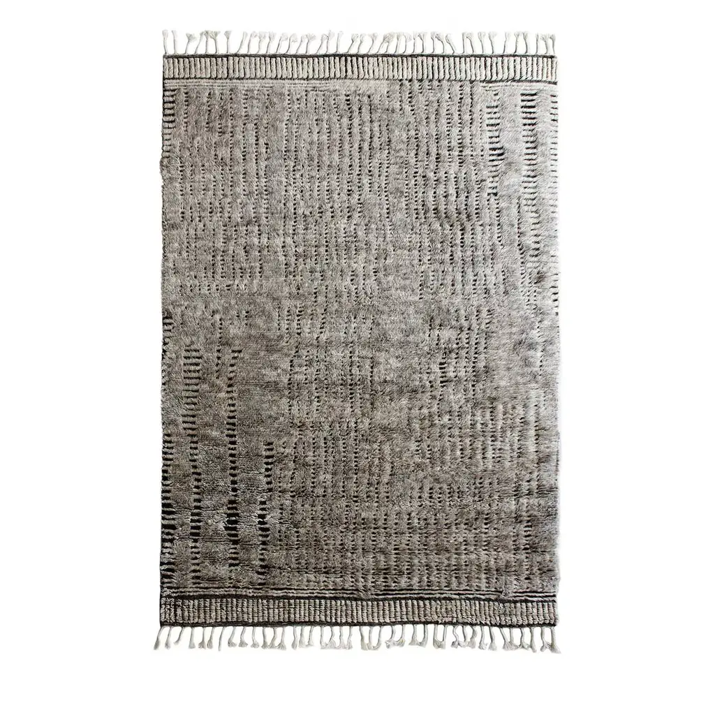 We exclusively create custom individual rugs for you. This means that we do not produce unnecessary items and we prioritize respecting nature. That's why we estimate it will take us around 7-8 weeks to create your rug.Beni Mrirt rugs are made of 100% soft and tender highest quality sheep wool, which is carefully gathered and taken care of. The Beni Mrirt rugs are considered to be the diamond of the Moroccan carpets collections well-deserved due to their superior quality. At first glance, Beni Mrirt and Beni Ourain look similar, but there is still a significant difference between them. The Beni Mrirt rug knot-tying technique varies by its fine weaving which is done more tightly. Ornaments and color palettes are different too. Except for widely used geometrical prints, carpets can be decorated with abstract compositions and the traditional Berber symbols of different colors: from black and brown to indigo and ochre.