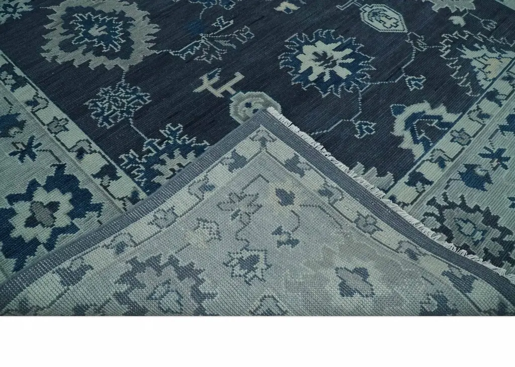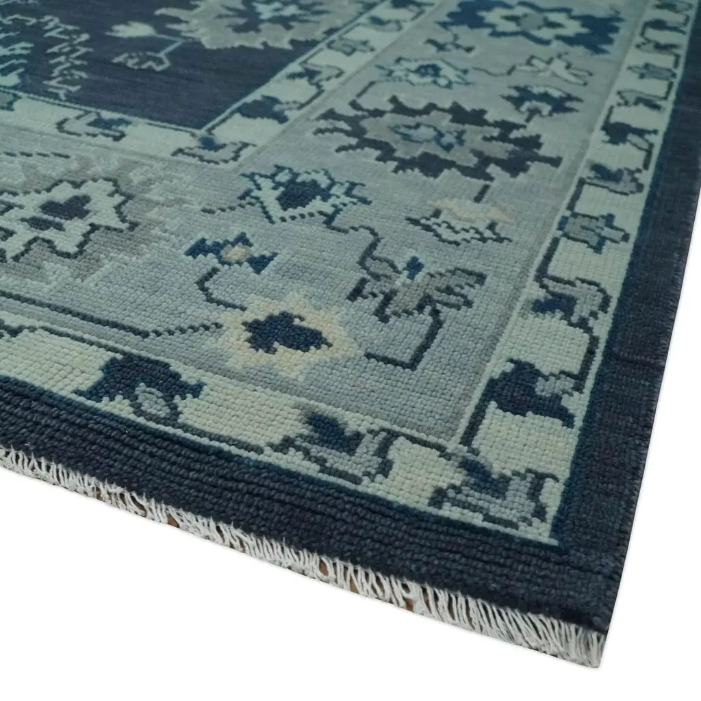 This Hand Knotted Blue, Silver and Ivory Traditional Oushak Vintage Style Wool Rug is a timeless piece made from carefully hand-knotted wool. It has a classic Oushak design, with a beautiful blend of ivory, silver and blue tones that will add traditional elegance to any living room or bedroom. Hand-Knotted SIZES ARE MADE TO ORDER IN 30-60 DAYS Made with Wool Color : Blue, Silver and Ivory Made with 28 knots per square inch Oushak rugs have been made for centuries and carry a tradition and art. This specific rug is made in India, in the city of Bhadohi. Bhadohi is one of the biggest rug manufacturing cities. Carpet weaving in the region dates back to the 16th century during the reign of Akbar. The skilled artisans of Bhadohi have been carrying the tradition of rug-making for centuries. USERS GUIDE Avoid prolonged moisture Vacuum regularly and/or shake to remove dust Do not pull any loose threads. Use scissors to simply cut the ends Blot spills immediately with a white cloth. Harsh chemicals may damage or fade the rug Use rug protectors under heavy furniture
