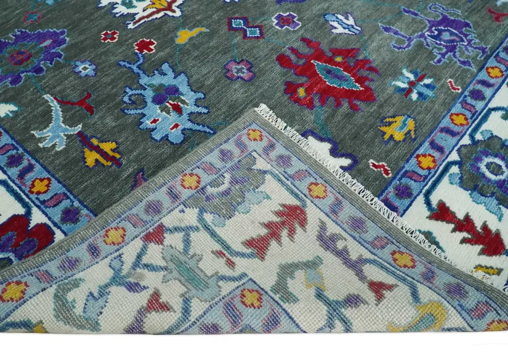 This Hand-Knotted Rug has been Made with Handspun Wool. The beautiful colors of the rug carry a legacy of the famous Heriz rug, the traditional design of the rug completes your space without making it look busy. Heriz rugs are durable and can last for decades if treated right. Hand-Knotted Rug Made with Wool Color: Charcoal, Blue and Ivory Made with 28 knots per square inch 8x10 Ready to ship, OTHER SIZES ARE MADE TO ORDER Heriz rugs have been made for centuries and carry a tradition and art. This specific rug is made in India, in the city of Bhadohi. Bhadohi is one of the biggest rug manufacturing cities. Carpet weaving in the region dates back to the 16th century during the reign of Akbar. The skilled artisans of Bhadohi have been carrying the tradition of rug-making for centuries. USERS GUIDE Avoid prolonged moisture Vacuum regularly and/or shake to remove dust Do not pull any loose threads. Use scissors to simply cut the ends Blot spills immediately with a white cloth. Harsh chemicals may damage or fade the rug Use rug protectors under heavy furniture