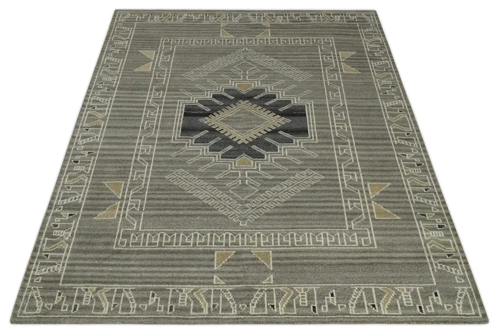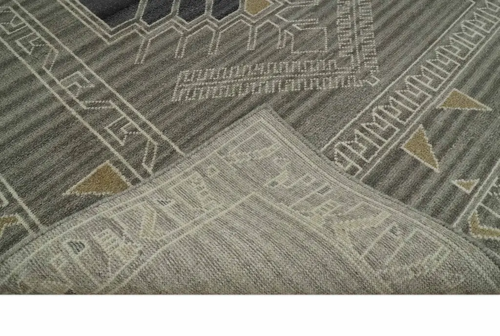This Hand-Knotted Rug has been Made with Handspun Wool. The beautiful colors of the rug carry a legacy of the famous Heriz rug, the traditional design of the rug completes your space without making it look busy. Heriz rugs are durable and can last for decades if treated right. Hand-Knotted Made with Wool Color : Charcoal, Ivory and Beige Made with 22 knots per square inch Made to order in 30 days - 45 days Heriz rugs have been made for centuries and carry a tradition and art. This specific rug is made in India, in the city of Bhadohi. Bhadohi is one of the biggest rug manufacturing cities. Carpet weaving in the region dates back to the 16th century during the reign of Akbar. The skilled artisans of Bhadohi have been carrying the tradition of rug-making for centuries. USERS GUIDE Avoid prolonged moisture Vacuum regularly and/or shake to remove dust Do not pull any loose threads. Use scissors to simply cut the ends Blot spills immediately with a white cloth. Harsh chemicals may damage or fade the rug Use rug protectors under heavy furniture