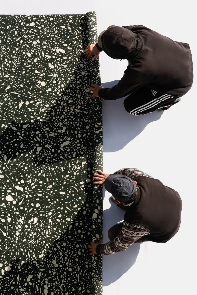 Hand knotted "Encre" Rug 200, Florian Pretet and Lisa Mukhia PretetMade to order dimensions can be orderedDimensions: 200 x 290 cm Materials: 60% wool, 40% silk100 knots/sq inVariations of color available. Through an ordinary almost awkward action like ink spilling on a blank canvas, there is grace and levity to be found in its path.Atelier Février designs and creates luxury, timeless, statement rugs. They don’t aim to follow any trend but to be the reflection of a genuine everyday life’s inspiration. The signature patterns are richly detailed, highlighted by a one-of-kind color palette and original cut-outs. The designs are the result of a thorough manual process for a natural finish. First being hand-drawn on paper, then scaled-up and hand knotted by expert weavers, the steps involves the combined workforce of around 50 people. Each rug is therefore unique due to its handmade nature.The rugs are made of premium wool from Tibet - known to have a high content of lanolin that protects the rug over time and ages beautifully - and the finest silk from China for added lustre and durability, ensuring the rugs being suitable for personal and public spaces. The average turnaround is minimum of 14 weeks.Fair trade standards and eco-friendly work methods are at the core of Atelier Fe´vrier’s approach. Atelier Février is committed to using 100% natural fibers and dyes, creating ethical work opportunities for those in Nepal and Tibet and promoting traditional Asian craftsmanship.Founders of Atelier Fe´vrier, Florian Pretet and Lisa Mukhia Pretet design together outstanding rugs skillfully hand knotted in Nepal. Their pieces are the epitome of contemporary art fused with traditional craftsmanship.A graduate form the Parisian Fashion School Studio Berc¸ot. Florian Pretet is a French designer who worked several years for a prestigious French fashion brand that led him to Kathmandu. Through Atelier Fe´vrier he breathes life into his drawing, translating them into beautiful design pieces.Born and raised between Darjeeling and Kathmandu - where traditions are the culture’s cornerstone - Lisa Mukhia Pretet is a keen entrepreneur with a strong love for fashion and Craft. She lived in Nepal for 15 years where her work experience and her exposure to vernacular techniques, brought forward her fascination for traditional crafts that have been passed along for generations.Real life partners, coming from different cultural and professional background, their association is drawn from those common passions for art, fashion, Craft and expertise.