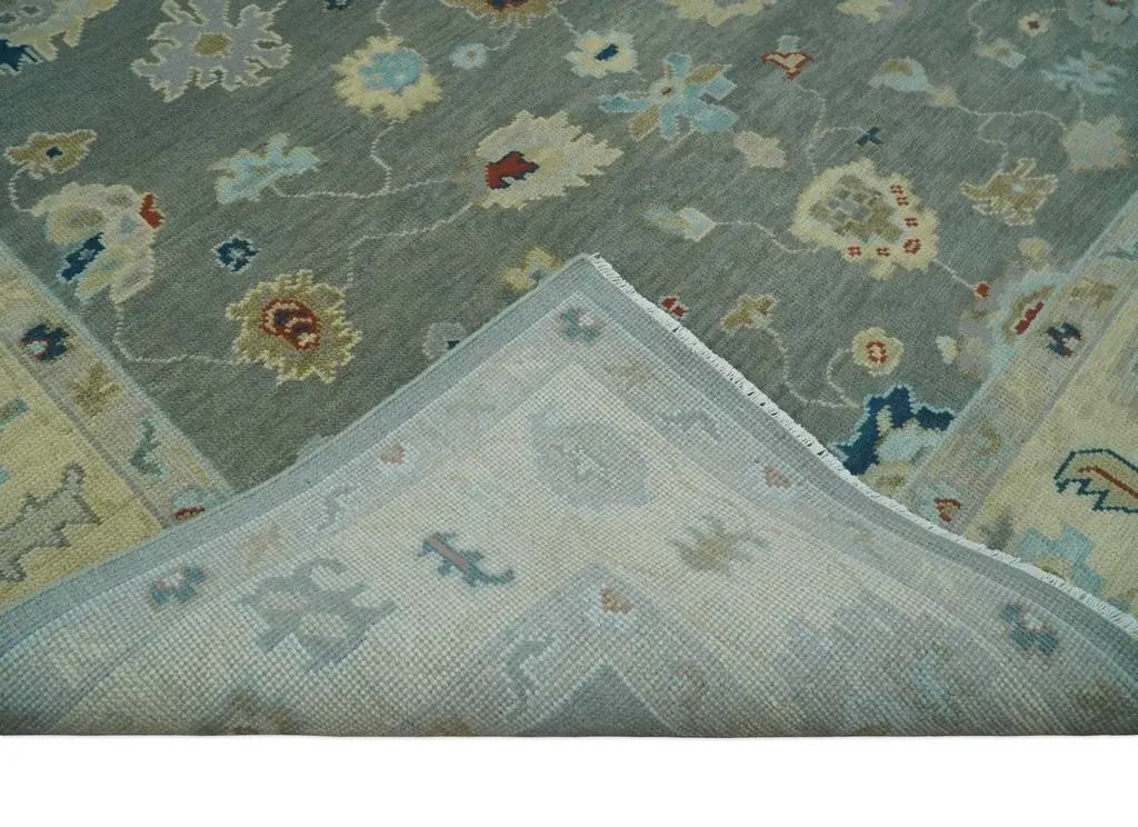 Hand Knotted Gray And Beige Traditional Oushak Wool Area Rug - 2.6x11