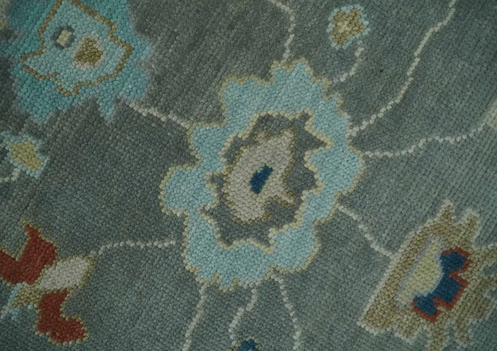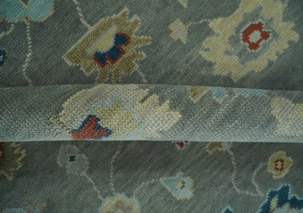 Hand Knotted Gray And Beige Traditional Oushak Wool Area Rug - 2.6x9