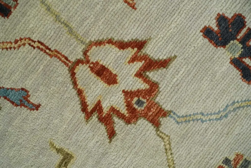 Hand Knotted Ivory, Charcoal And Blue Traditional Oriental Oushak Multi Size Wool Area Rug - 2.6x12