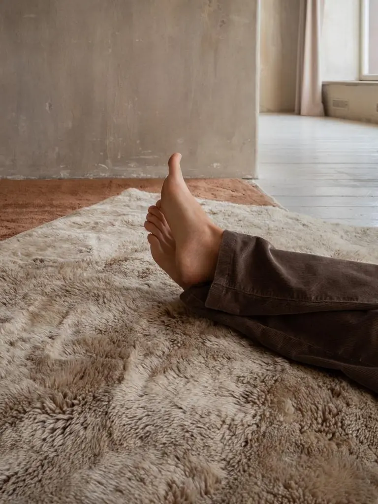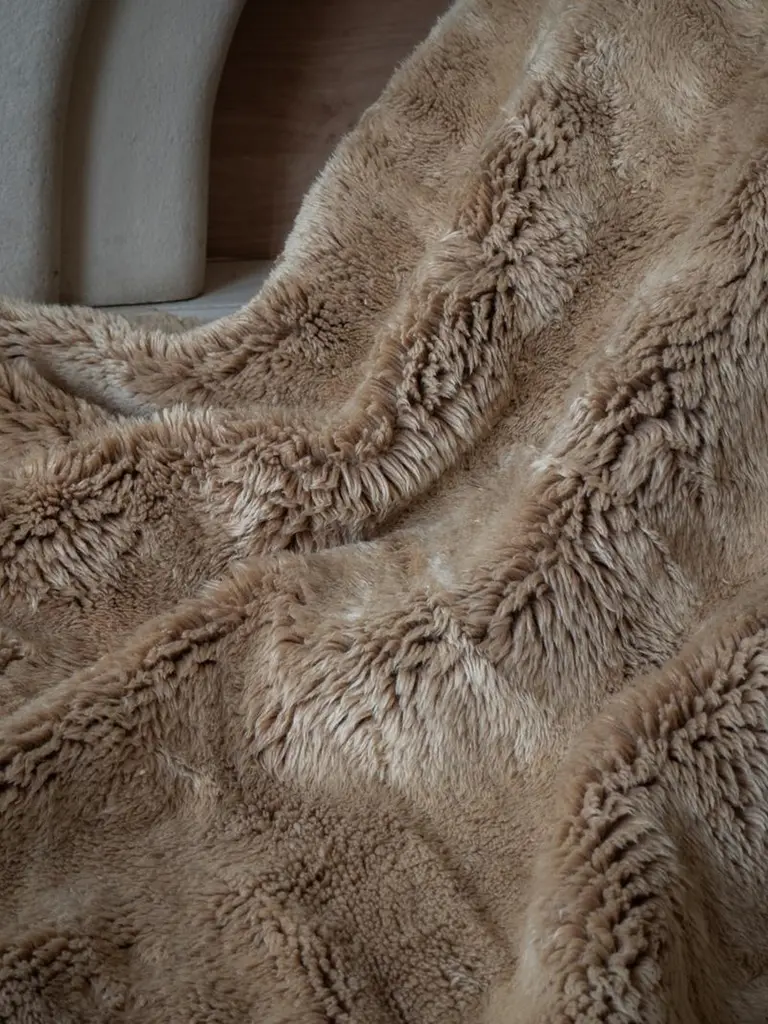 Hand-Knotted Moroccan Beni Mrirt Rug 3’x5’, Solid Oat Plush Rug, Custom-Made