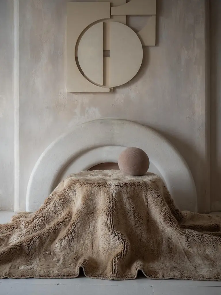 We exclusively create custom individual rugs for you. This means that we do not produce unnecessary items and we prioritize respecting nature. That's why we estimate it will take us around 8-9 weeks to create your rug.Beni Mrirt rugs are made of 100% soft and tender highest quality sheep wool, which is carefully gathered and taken care of. The Beni Mrirt rugs are considered to be the diamond of the Moroccan carpets collections well-deserved due to their superior quality. At first glance, Beni Mrirt and Beni Ourain look similar, but there is still a significant difference between them. The Beni Mrirt rug knot-tying technique varies by its fine weaving which is done more tightly. Ornaments and color palettes are different too. Except for widely used geometrical prints, carpets can be decorated with abstract compositions and the traditional Berber symbols of different colors: from black and brown to indigo and ochre.