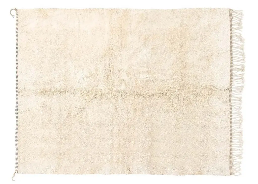 Hand-Knotted Moroccan Beni Mrirt Rug 3'x5', Solid White Plush Rug, Made To Order