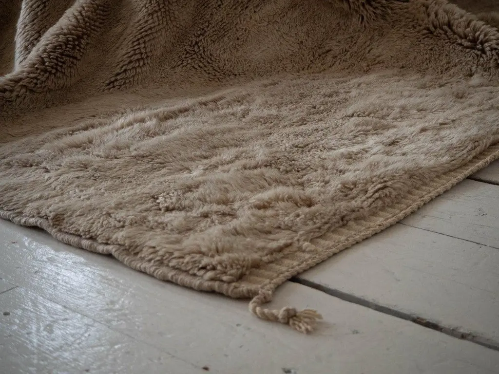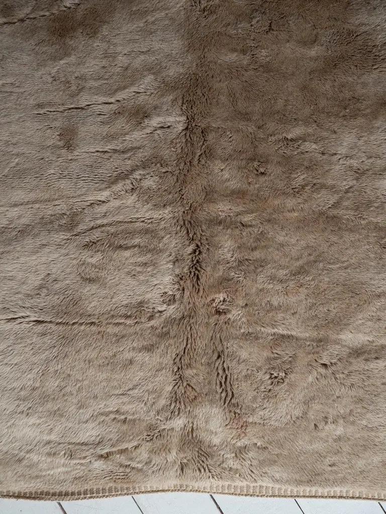 Hand-Knotted Moroccan Beni Mrirt Rug 8’x10’, Solid Oat Plush Rug, Custom-Made