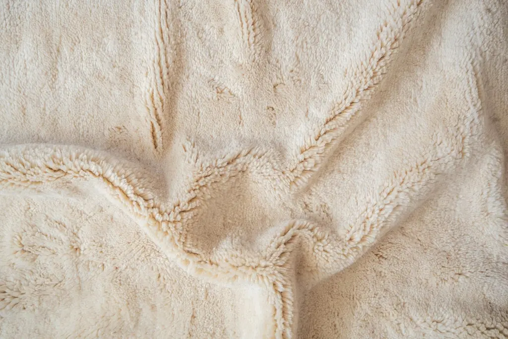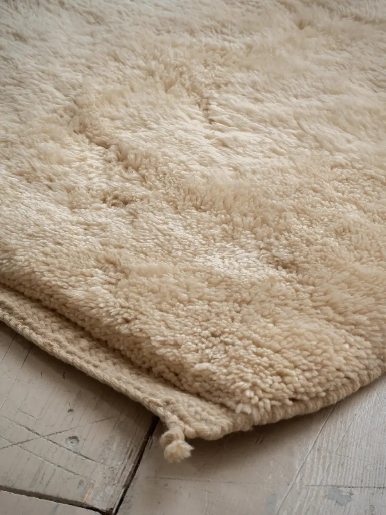We exclusively create custom individual rugs for you. This means that we do not produce unnecessary items and we prioritize respecting nature. That's why we estimate it will take us around 8-9 weeks to create your rug.Beni Mrirt rugs are made of 100% soft and tender highest quality sheep wool, which is carefully gathered and taken care of. The Beni Mrirt rugs are considered to be the diamond of the Moroccan carpets collections well-deserved due to their superior quality. At first glance, Beni Mrirt and Beni Ourain look similar, but there is still a significant difference between them. The Beni Mrirt rug knot-tying technique varies by its fine weaving which is done more tightly. Ornaments and color palettes are different too. Except for widely used geometrical prints, carpets can be decorated with abstract compositions and the traditional Berber symbols of different colors: from black and brown to indigo and ochre.