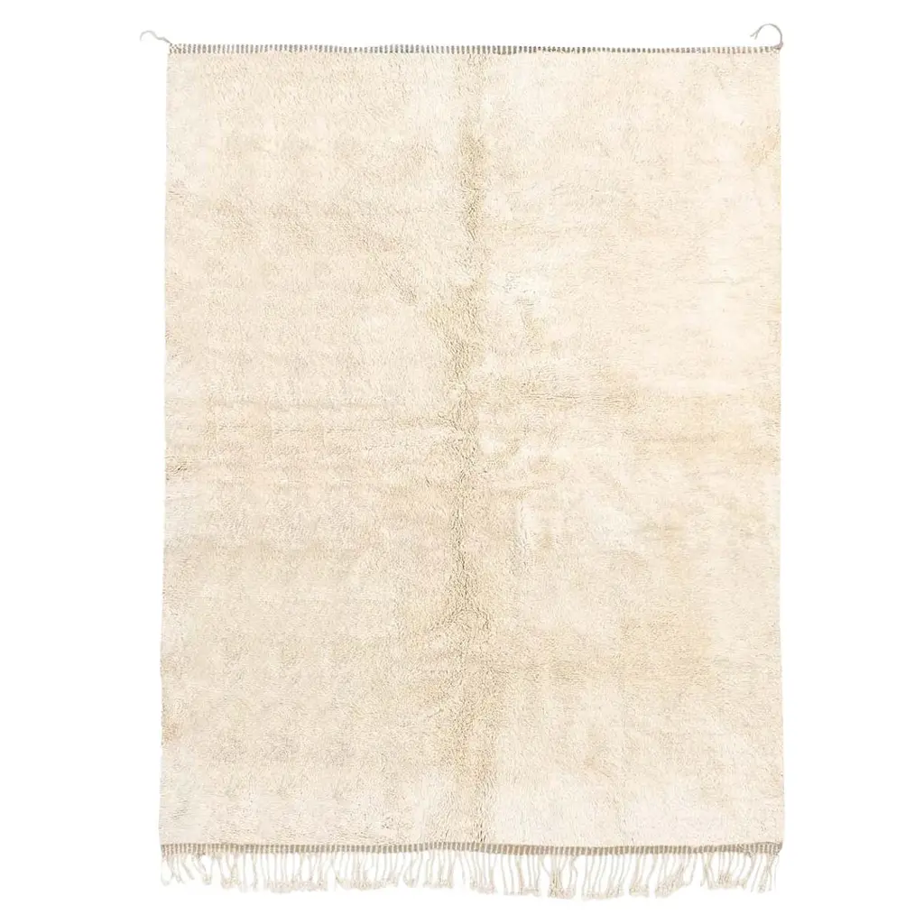 Hand-Knotted Moroccan Beni Mrirt Rug 9'x12', Solid White Plush Rug, Custom-Made