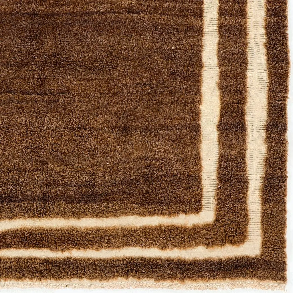 Hand-Knotted Moroccan Berber Style Tulu Rug Made Of Natural Beige And Brown Wool
