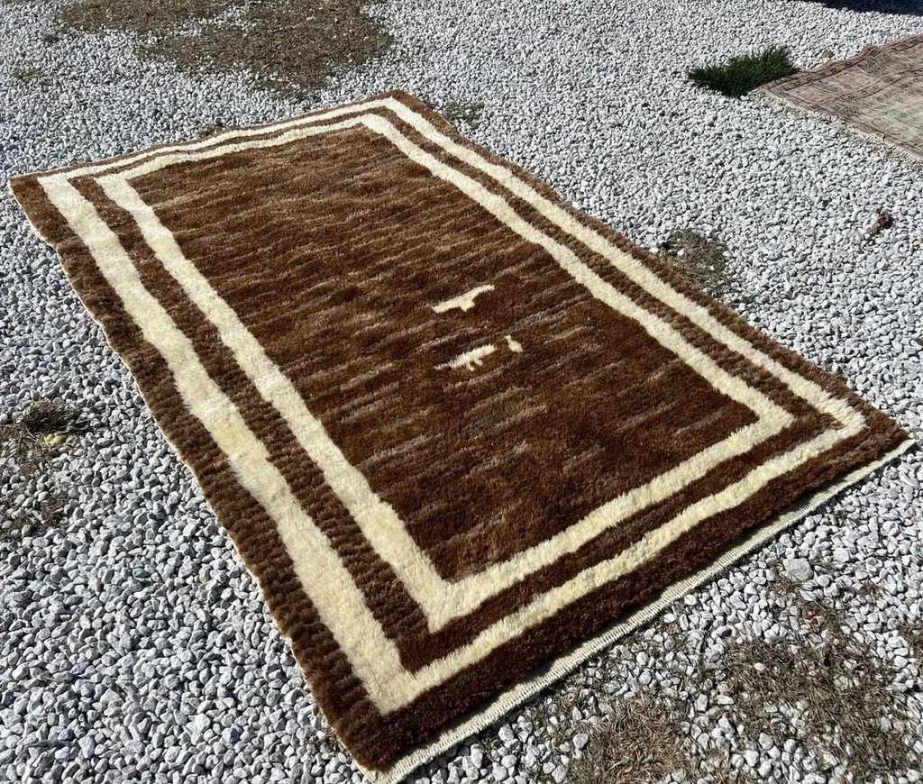 Transform your space with the understated luxury of our Moroccan-style hand-knotted Tulu rug, inspired by the heritage-rich designs of the Beni Ourain tribes. This rug is a celebration of craftsmanship and tradition, entirely handmade by skilled artisans using 100% natural wool, offering both exceptional quality and timeless character.What makes this rug special?Tulu rugs are known for their plush, deep pile and irresistibly soft texture. Originally used in the cold mountainous regions of Anatolia and North Africa, Tulu rugs were crafted to provide warmth, comfort, and coziness in everyday life. Today, they are cherished for their unique, tactile quality and relaxed yet elegant aesthetic. With its organic softness and hand-tied knots, this rug brings not just decoration—but a story—into your home.Whether you're styling a modern loft, a serene minimalist bedroom, or a cozy reading nook, this piece will anchor your space with texture, tradition, and soul. Its clean lines and contemporary interpretation of tribal design make it a versatile addition to nearly any interior style—boho, Nordic, Japandi, or eclectic.Product Details:Material: 100% Natural WoolTechnique: Hand-knotted by skilled artisansConstruction: Fully handmade using traditional methodsFeel: Soft underfootOrigin: Handmade by master weavers in a traditional workshopDurable and made to last for yearsCare: Vacuum regularly; professional cleaning recommendedLooking for a different size or color?We offer custom orders! Whether you need a different size, pile height, or a unique color combination, we are happy to create a bespoke rug just for you.Feel free to message us with your requirements – we’d love to help you bring your vision to life!