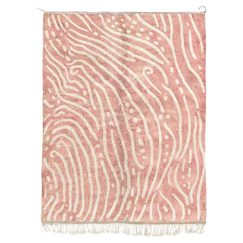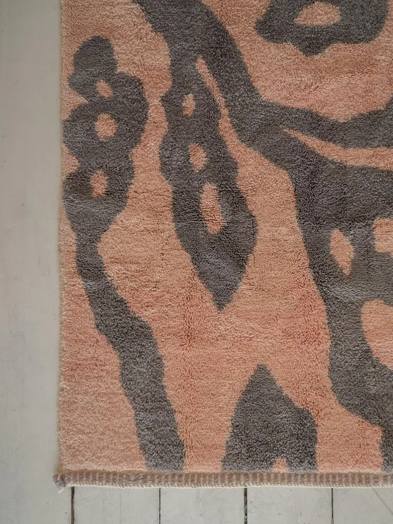 Hand-Knotted Moroccan Rug 4’x6’, Pink And Grey Botanical Design, Custom-Made