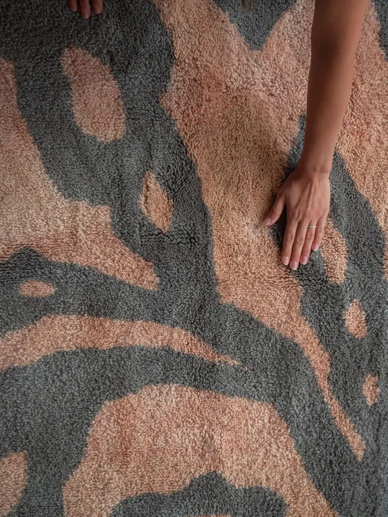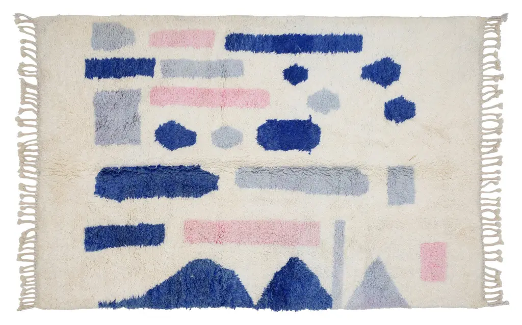 We exclusively create custom individual rugs for you. This means that we do not produce unnecessary items and we prioritize respecting nature. That's why we estimate it will take us around 8-9 weeks to create your rug.Beni Mrirt rugs are made of 100% soft and tender highest quality sheep wool, which is carefully gathered and taken care of. The Beni Mrirt rugs are considered to be the diamond of the Moroccan carpets collections well-deserved due to their superior quality. At first glance, Beni Mrirt and Beni Ourain look similar, but there is still a significant difference between them. The Beni Mrirt rug knot-tying technique varies by its fine weaving which is done more tightly. Ornaments and color palettes are different too. Except for widely used geometrical prints, carpets can be decorated with abstract compositions and the traditional Berber symbols of different colors: from black and brown to indigo and ochre.