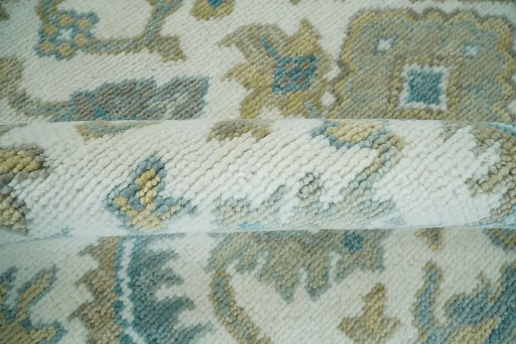 Hand Knotted Oriental Oushak Teal, Ivory And Beige Custom Made Wool Area Rug - 2.6x9
