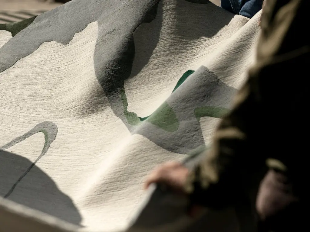 Hand Knotted "Sodad Low" Rug 200, Florian Pretet and Lisa Mukhia PretetMade To Order Dimensions can be orderedDimensions: 200 x 290 cm Materials: 85% Wool, 15% Silk100 knots/sq inVariations of color available.Sodad hints towards a delicate playfulness. With its swirly, liquid motif reminiscent of natural marble it comes in two versions. One with an exaggerated, elevated pattern for a dramatic effect and another, lowe-red, more subtle version.Atelier Février designs and creates luxury, timeless, statement rugs. They don’t aim to follow any trend but to be the reflection of a genuine everyday life’s inspiration. The signature patterns are richly detailed, highlighted by a one-of-kind color palette and original cut-outs. The designs are the result of a thorough manual process for a natural finish. First being hand-drawn on paper, then scaled-up and hand knotted by expert weavers, the steps involves the combined workforce of around 50 people. Each rug is therefore unique due to its handmade nature.The rugs are made of premium wool from Tibet - known to have a high content of lanolin that protects the rug over time and ages beautifully - and the finest silk from China for added lustre and durability, ensuring the rugs being suitable for personal and public spaces. The average turnaround is minimum of 14 weeks.Fair trade standards and eco-friendly work methods are at the core of Atelier Fe´vrier’s approach. Atelier Février is committed to using 100% natural fibers and dyes, creating ethical work opportunities for those in Nepal and Tibet and promoting traditional Asian craftsmanship.Founders of Atelier Fe´vrier, Florian Pretet and Lisa Mukhia Pretet design together outstanding rugs skillfully hand knotted in Nepal. Their pieces are the epitome of contemporary art fused with traditional craftsmanship.A graduate form the Parisian Fashion School Studio Berc¸ot. Florian Pretet is a French designer who worked several years for a prestigious French fashion brand that led him to Kathmandu. Through Atelier Fe´vrier he breathes life into his drawing, translating them into beautiful design pieces.Born and raised between Darjeeling and Kathmandu - where traditions are the culture’s cornerstone - Lisa Mukhia Pretet is a keen entrepreneur with a strong love for fashion and Craft. She lived in Nepal for 15 years where her work experience and her exposure to vernacular techniques, brought forward her fascination for traditional crafts that have been passed along for generations.Real life partners, coming from different cultural and professional background, their association is drawn from those common passions for art, fashion, Craft and expertise.