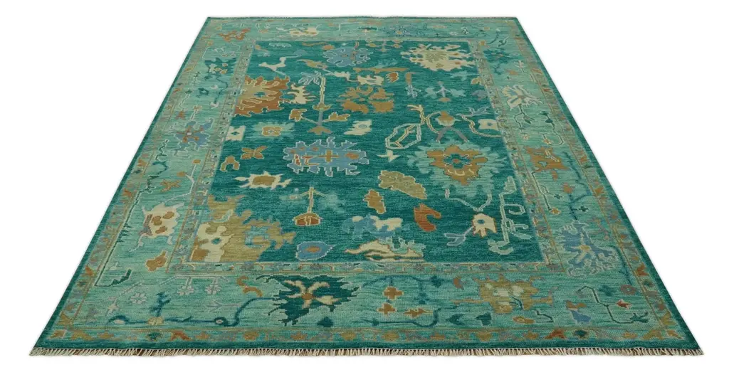 This Hand Knotted Teal Traditional Oushak Multi-size wool area rug is a beautiful and durable addition to any space. Made with high-quality wool, it is both soft and long-lasting. The traditional Oushak design adds elegance and the multi-size option allows for versatile use. Hand-knotted with expert craftsmanship ensures a true work of art. Hand-Knotted Made with Wool Made to Order in 30-45 Days Color: Teal Made with 22 knots per Square inch USERS GUIDE Avoid prolonged moisture Vacuum regularly and/or shake to remove dust Do not pull any loose threads. Use scissors to simply cut the ends The blot spills immediately with a white cloth. Harsh chemicals may damage or fade the rug Use rug protectors under heavy furniture
