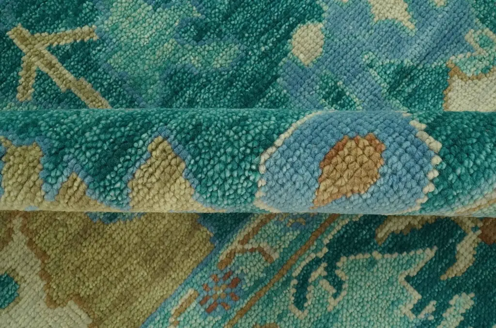 Hand Knotted Teal Traditional Oushak Multi Size Wool Area Rug - 2.6x9