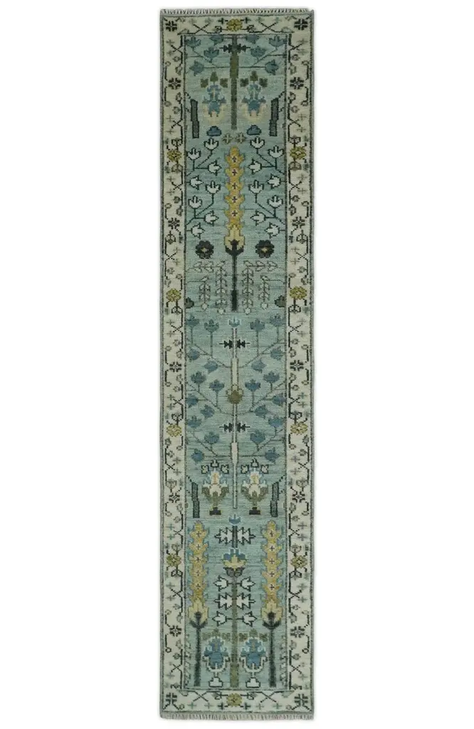 Hand Knotted Traditional Blue And Ivory Antique Oushak Custom Made Wool Area Rug - 2.6x11
