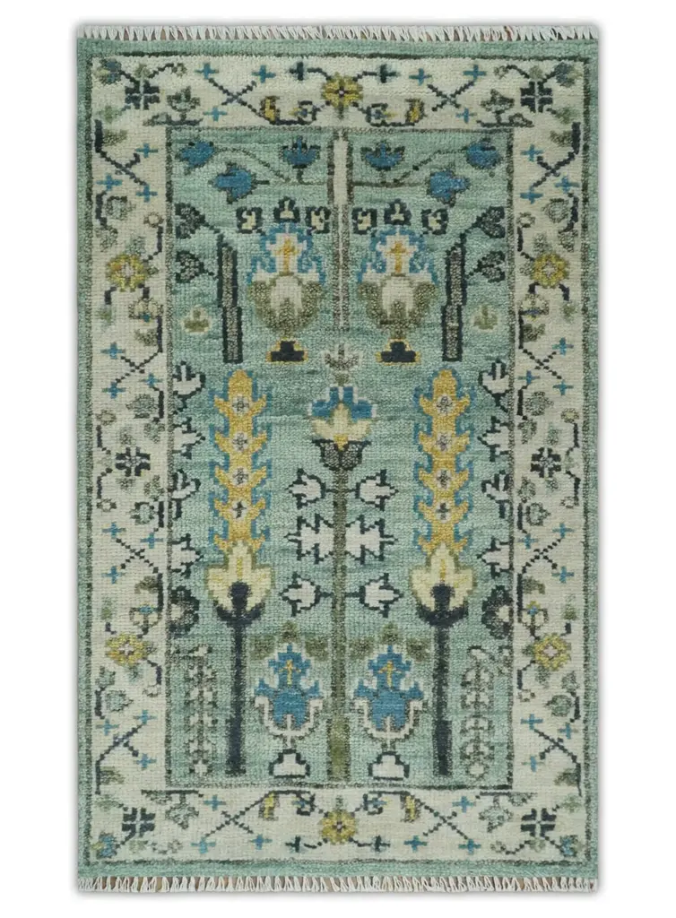 The Oriental Oushak design with a classic color combination of Blue and Ivory gives it an antique look. The rug is made with fine Wool. It is a perfect pick to give your interior a classic feel. Hand-knotted wool rug Sizes are made to order in 30 - 45 days Made with fine Hand-spun Wool Color: Blue and Ivory Contact us for custom size Oushak or Ushak rugs are Turkish rugs that use a particular family of designs. Oushak rug's origin can be traced back to the Ottoman empire. Oushak rugs are evergreen Persian rugs. A lot of Oushak rugs are machine-made now, but we have carried this legacy forward in India. Our Oushak rugs are handmade with fine imported wool in Bhadohi, which is one of the biggest rug manufacturing cities. Carpet weaving in the region dates back to the 16th century during the reign of Akbar. The skilled artisans of Bhadohi have been carrying the tradition of rug-making for centuries.USERS GUIDE Avoid prolonged moisture Vacuum regularly and/or shake to remove dust Do not pull any loose threads. Use scissors to simply cut the ends Blot spills immediately with a white cloth. Harsh chemicals may damage or fade the rug Use rug protectors under heavy furniture