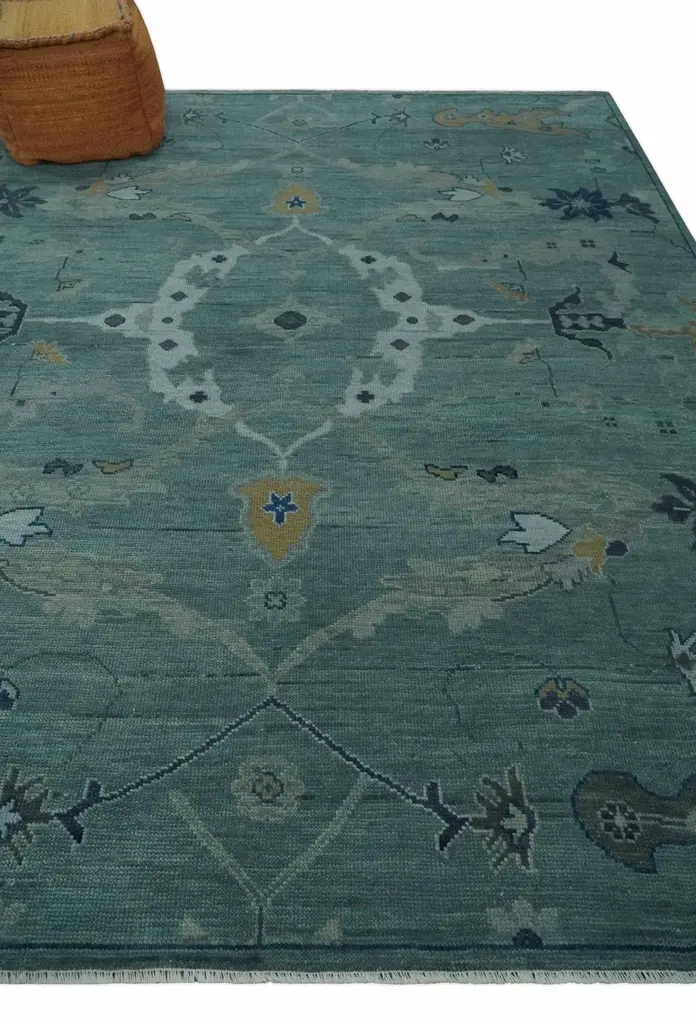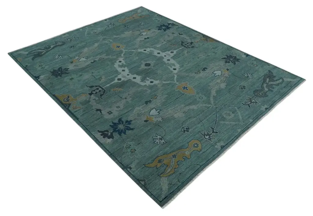 This Hand Knotted Traditional Oriental Oushak Antique Style Green Wool Area Rug is crafted with precision, featuring an intricate hand-knotted design that combines classical Oriental Oushak motifs with the antique style of rug-making. This luxurious wool rug adds a timeless touch of elegance to any home. Hand-Knotted SIZES ARE MADE TO ORDER IN 30-60 DAYS Made with Wool Color : Green Made with 28 knots per square inch This specific rug is made in India, in the city of Bhadohi. Bhadohi is one of the biggest rug manufacturing cities. Carpet weaving in the region dates back to the 16th century during the reign of Akbar. The skilled artisans of Bhadohi have been carrying the tradition of rug-making for centuries. USERS GUIDE Avoid prolonged moisture Vacuum regularly and/or shake to remove dust Do not pull any loose threads. Use scissors to simply cut the ends The blot spills immediately with a white cloth. Harsh chemicals may damage or fade the rug Use rug protectors under heavy furniture