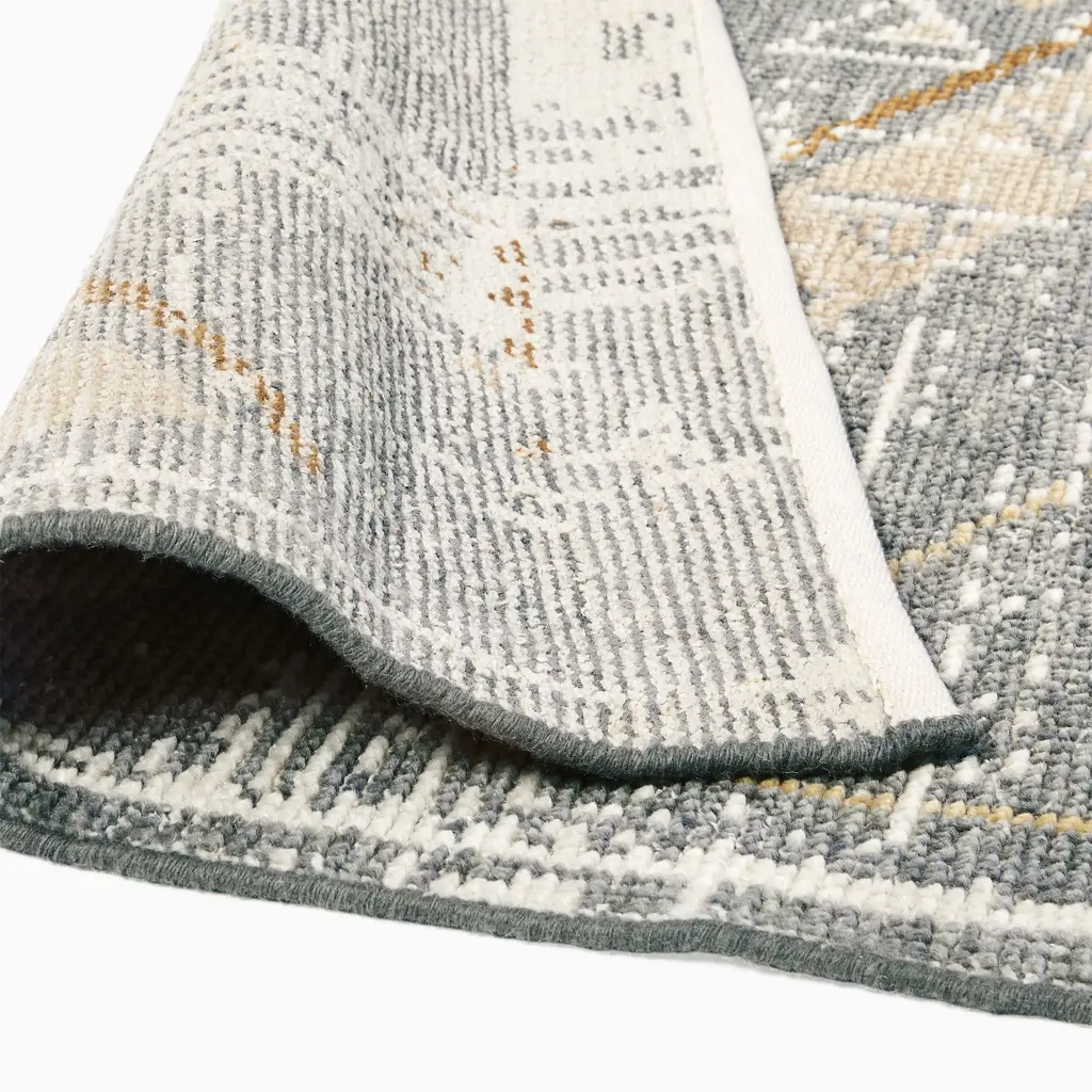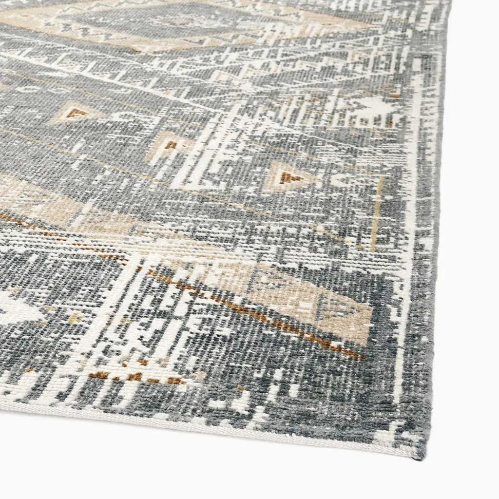 Large-scale geometrics make it mesmerizing. Intricate detailing gives it worldly charm. Its rich base is overlayed with neutral tones. Perfect cozy, persian-style rug for any room.