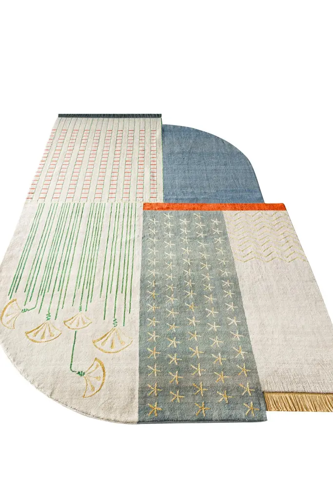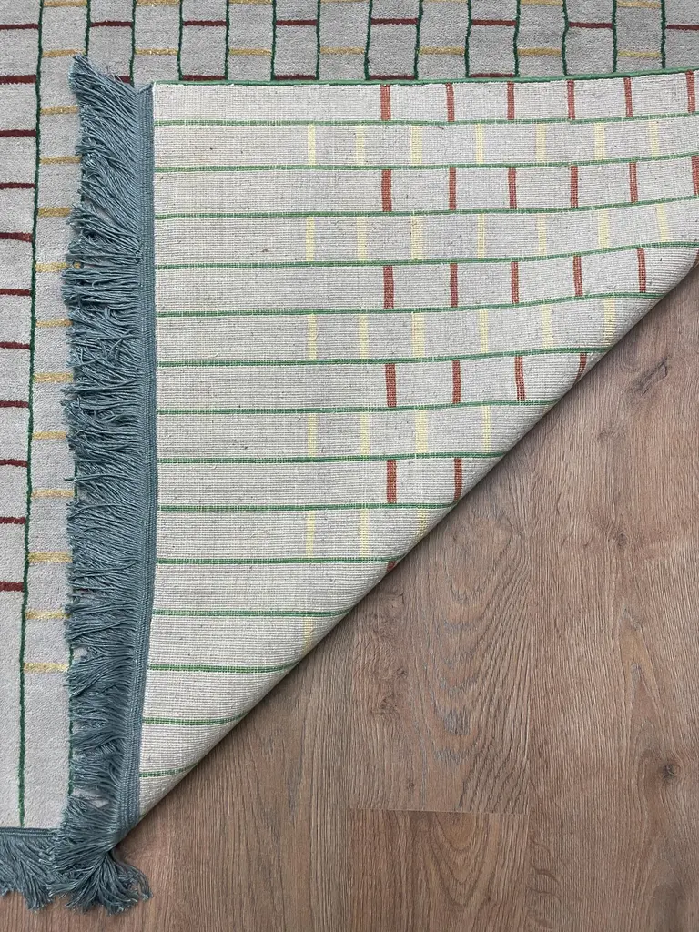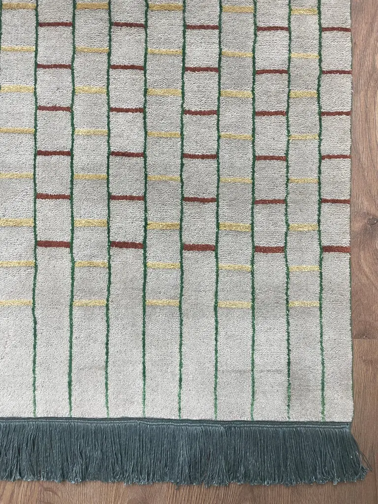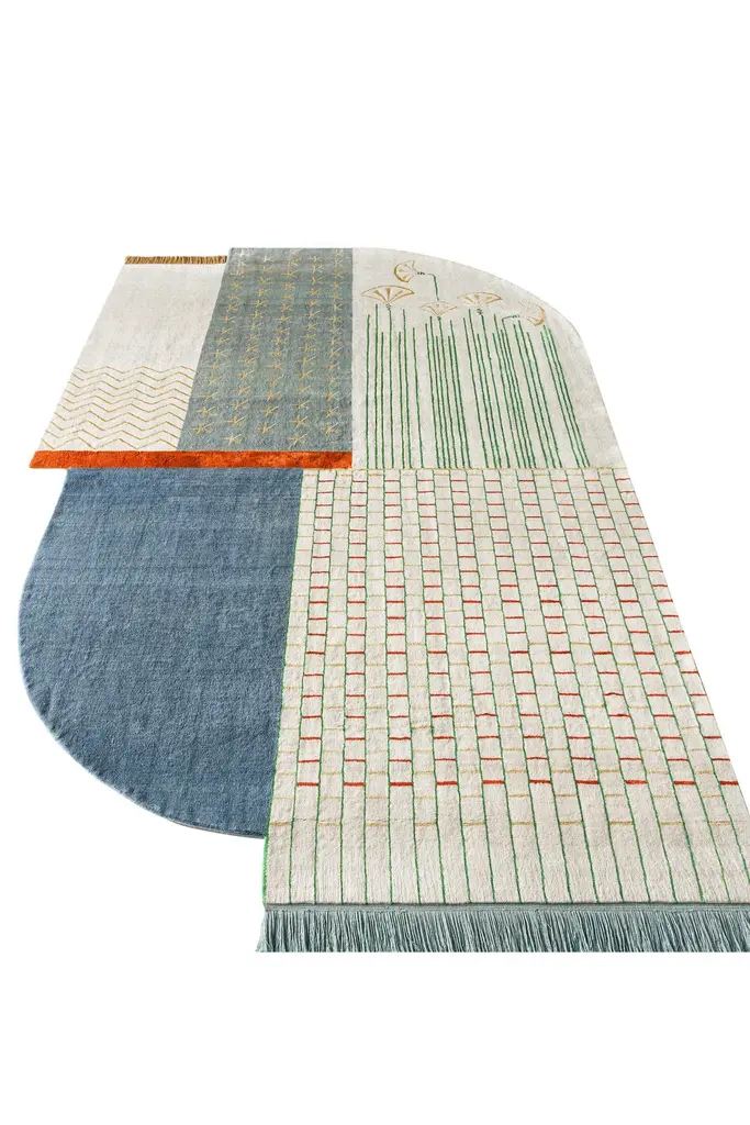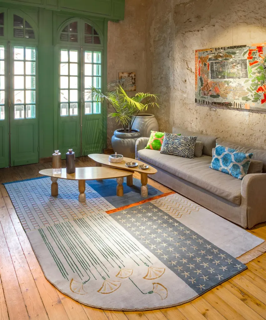 For the more adventurous soul, in our Blue Blossom carpet Shewekar ventures into more heritage and art. Patchwork takes on a new meaning as the swaying Lotus flower is contrasted with the Ancient Egyptian geometric depiction of the flowing river Nile, and the gold stars famously drawn on tombs’ ceilings representing the heavens and afterlife. Mostly in hues of blue and grey, the design is beautifully interrupted with deep crimson lines for an added touch of warmth. Note: Due to the intricate handmade process of weaving and dyeing of colors, rugs of this type are truly one-of-a-kind. Each rug has a unique personality, no two rugs are exactly the same. Technical Details: - Construction: Hand Knotted - Quality: 160,000 knots per square meter - Face Yarn: 100% Egyptian Wool with Bamboo Silk inlays - Pile Height: +/- 6mm - Warp: 100% Egyptian Cotton - Weft: 100% Egyptian Cotton - Net Weight: Approximately 3000 grams per square meter.