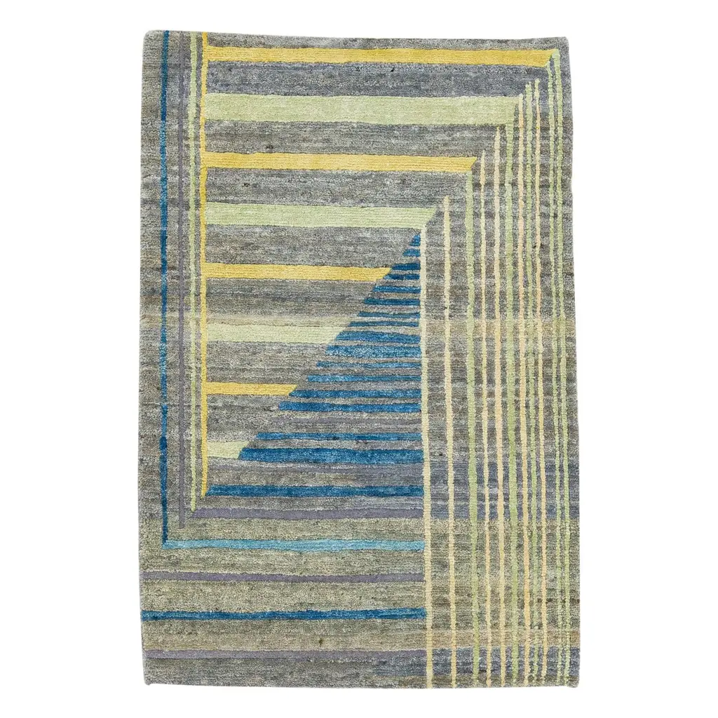 Hand-Knotted Wool & Silk Cut-Out Rug With Modernized Ancient Egyptian Design