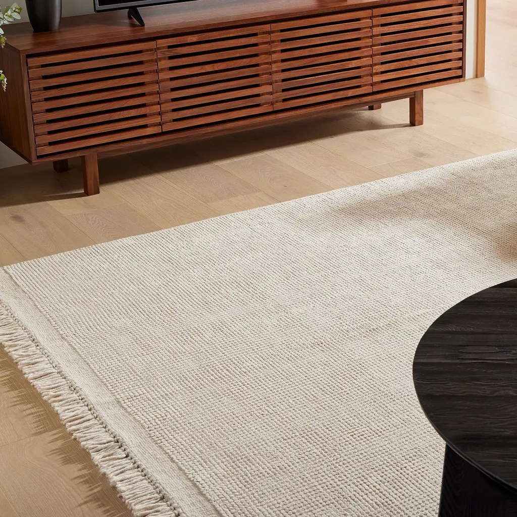 This rug is a solid with much more intrigue. Gabbeh dyeing makes each unmistakably unique. It's hand-loomed from plush, durable 100% wool. Instantly warms up a living room or bedroom.