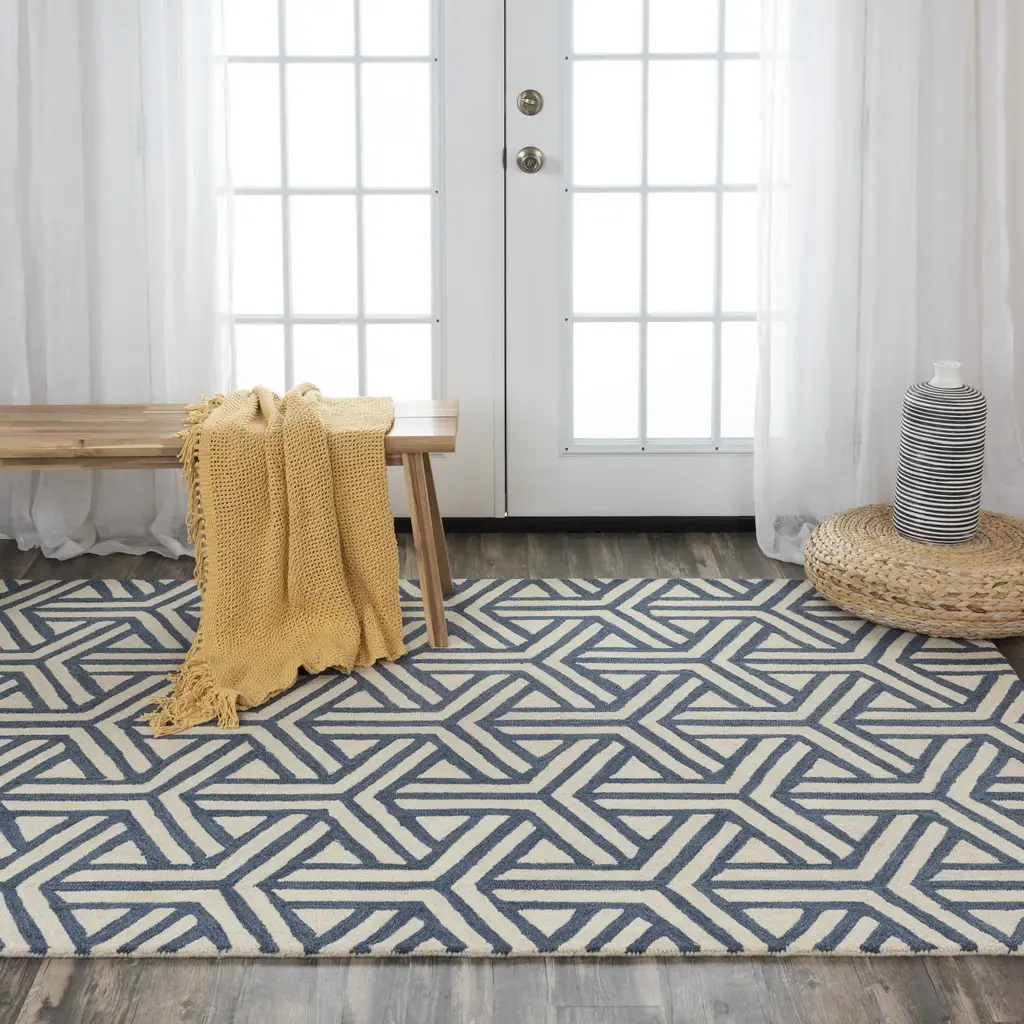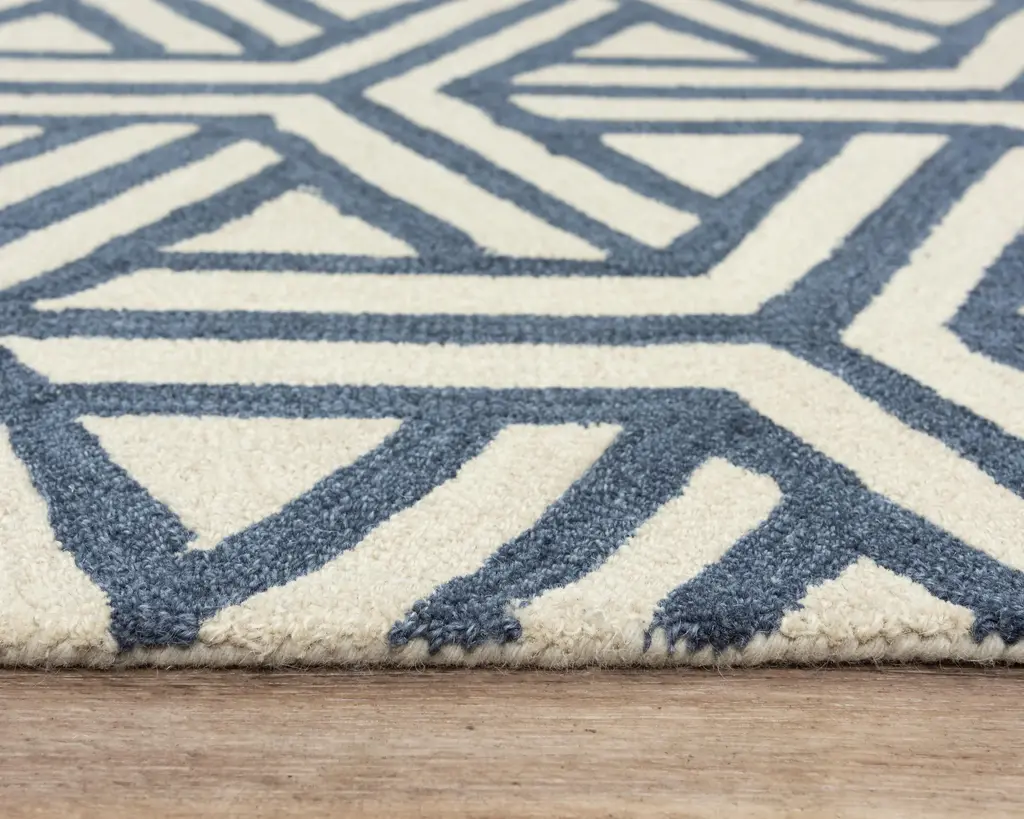 Hand Tufted 100% Wool Geometric Area Rug - Blue / 7'6" X 9'9"