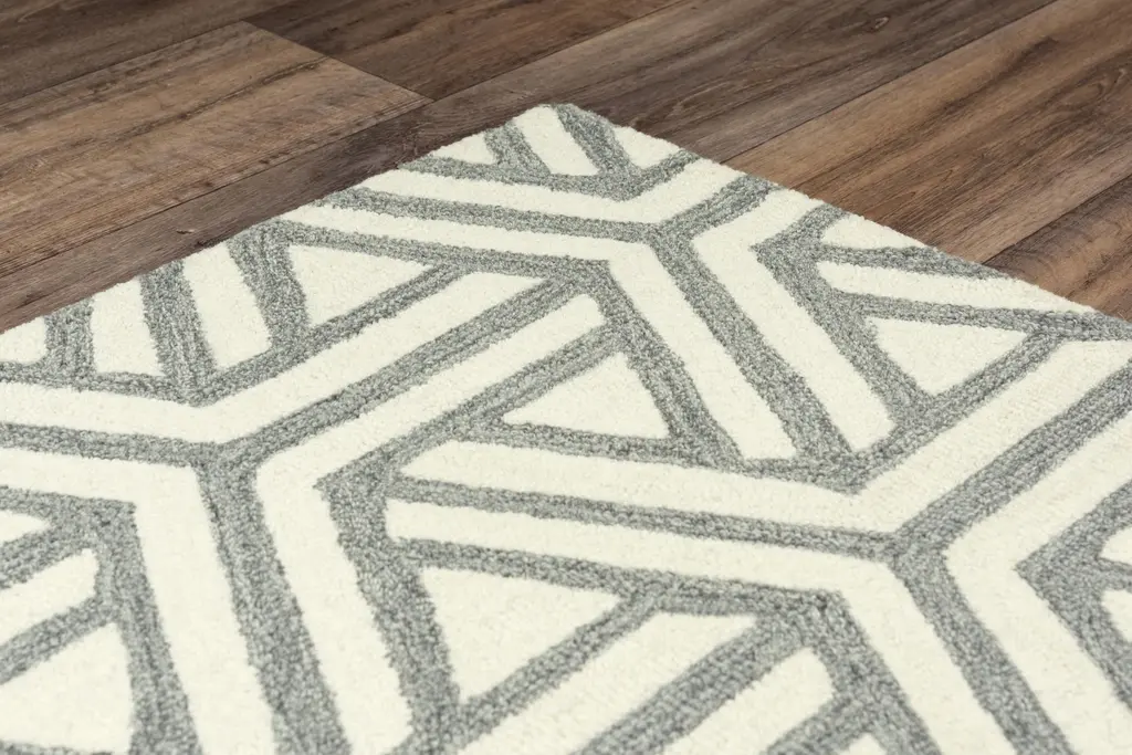 Hand Tufted 100% Wool Geometric Area Rug - Gray / 5' X 7'6"
