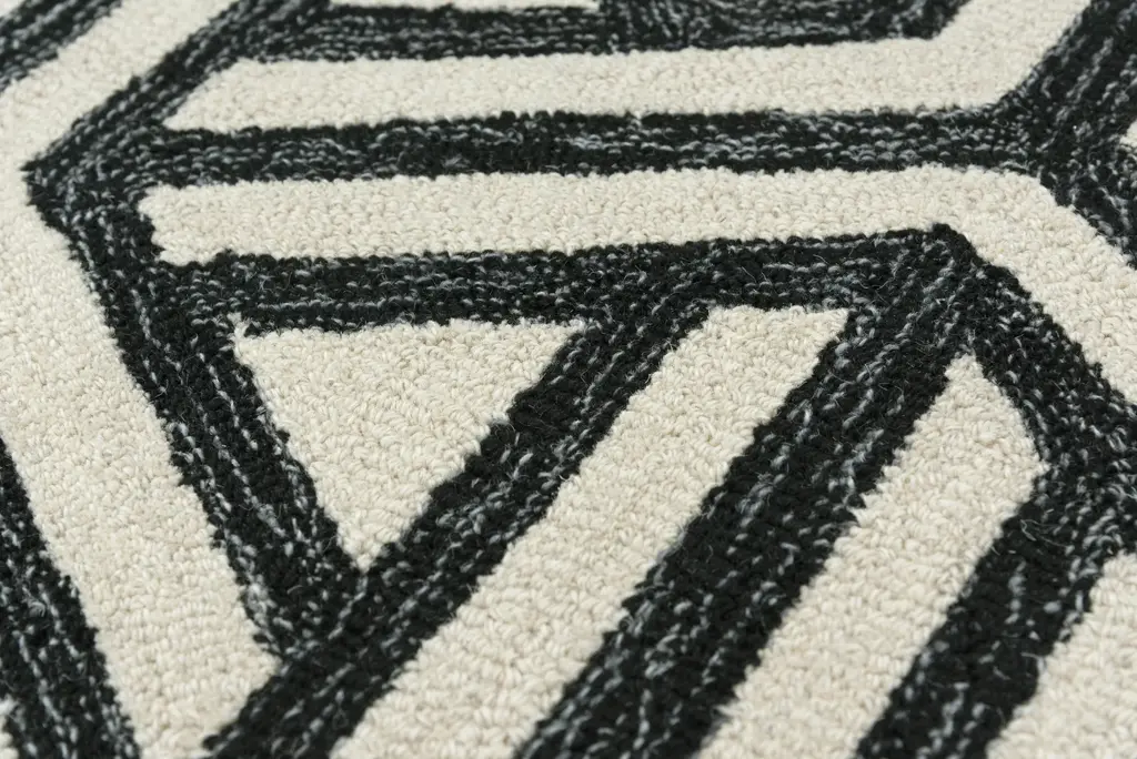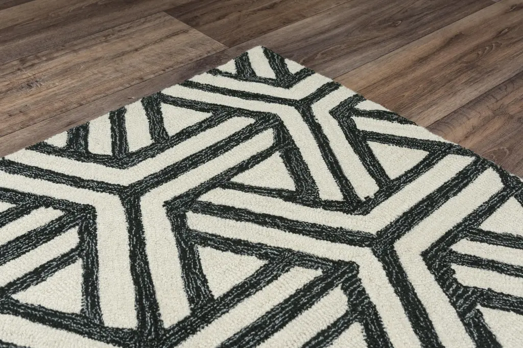 Make a bold statement with this Ellis Geometric Rug. Combining natural fibers in an exclusive contemporary design adds beauty. After spending a lifetime honing the art of hand-crafted carpets, an artisan from India hand-tufted and hand-trimmed this rug. Woven in 100-percent wool, the softness and quality of this piece adds an attractive, strong, modern vibe to your home or office.