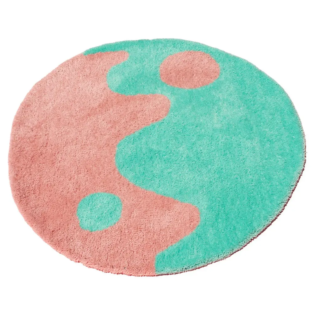 Hand Tufted Pink, Teal, And Cream Abstract Cow Area Rug