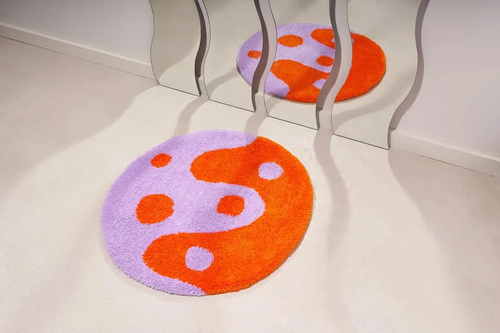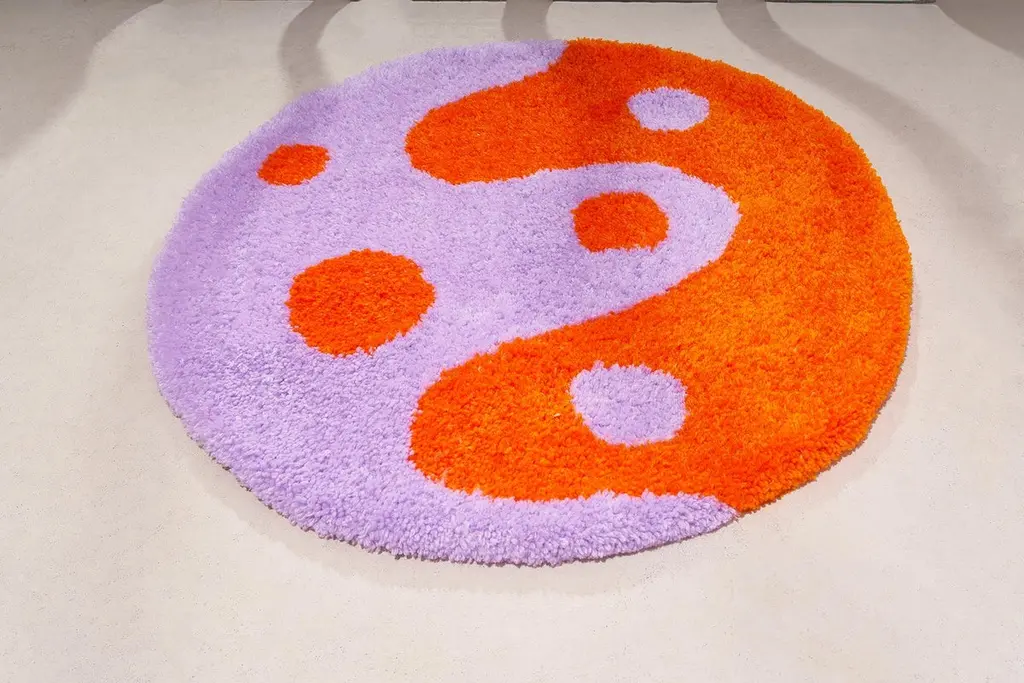 Hand Tufted Purple And Orange Yin Yang Dot Rug