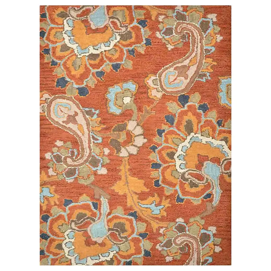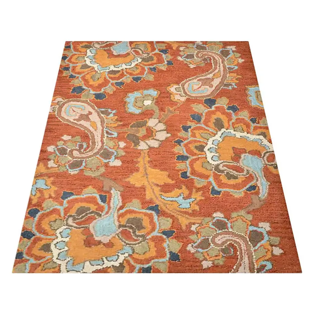 Hand Tufted Wool Eco-Friendly Area Rugs, Rust Color, Floral Design