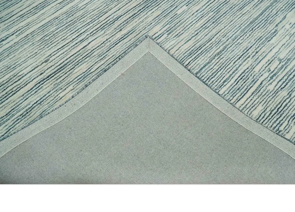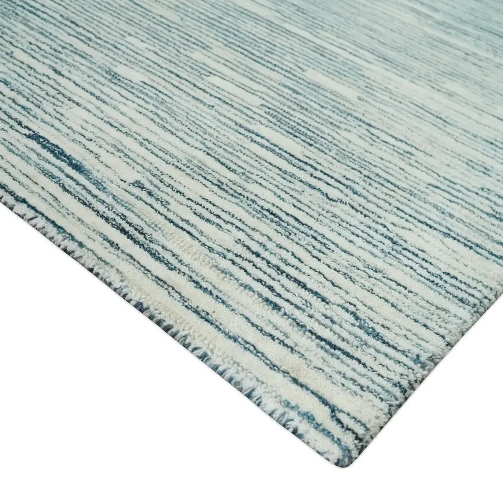 Hand Tufted Woolen Modern White And Blue Custom Made Area Rug - 2X3