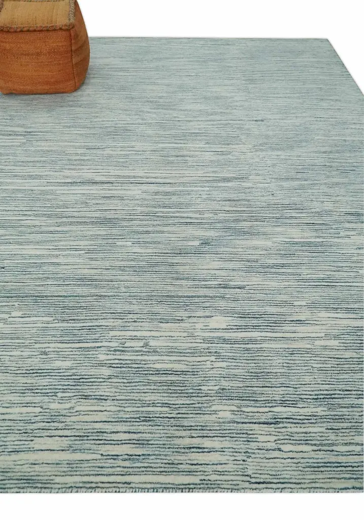 The Cloud Collection is inspired by the Sky. Hand-made with wool. The subtle soft colors fit in any space. It's perfect for a modern space but not limited to it. The loop and cut pile give the rug a unique texture. OTHER SIZES MADE TO ORDER IN 30-45 DAYS Made with Wool Color: White and Blue Contact us for custom sizes USERS GUIDE Avoid prolonged moisture Vacuum regularly and/or shake to remove dust Do not pull any loose threads. Use scissors to simply cut the ends Blot spills immediately with a white cloth. Harsh chemicals may damage or fade the rug Use rug protectors under heavy furniture